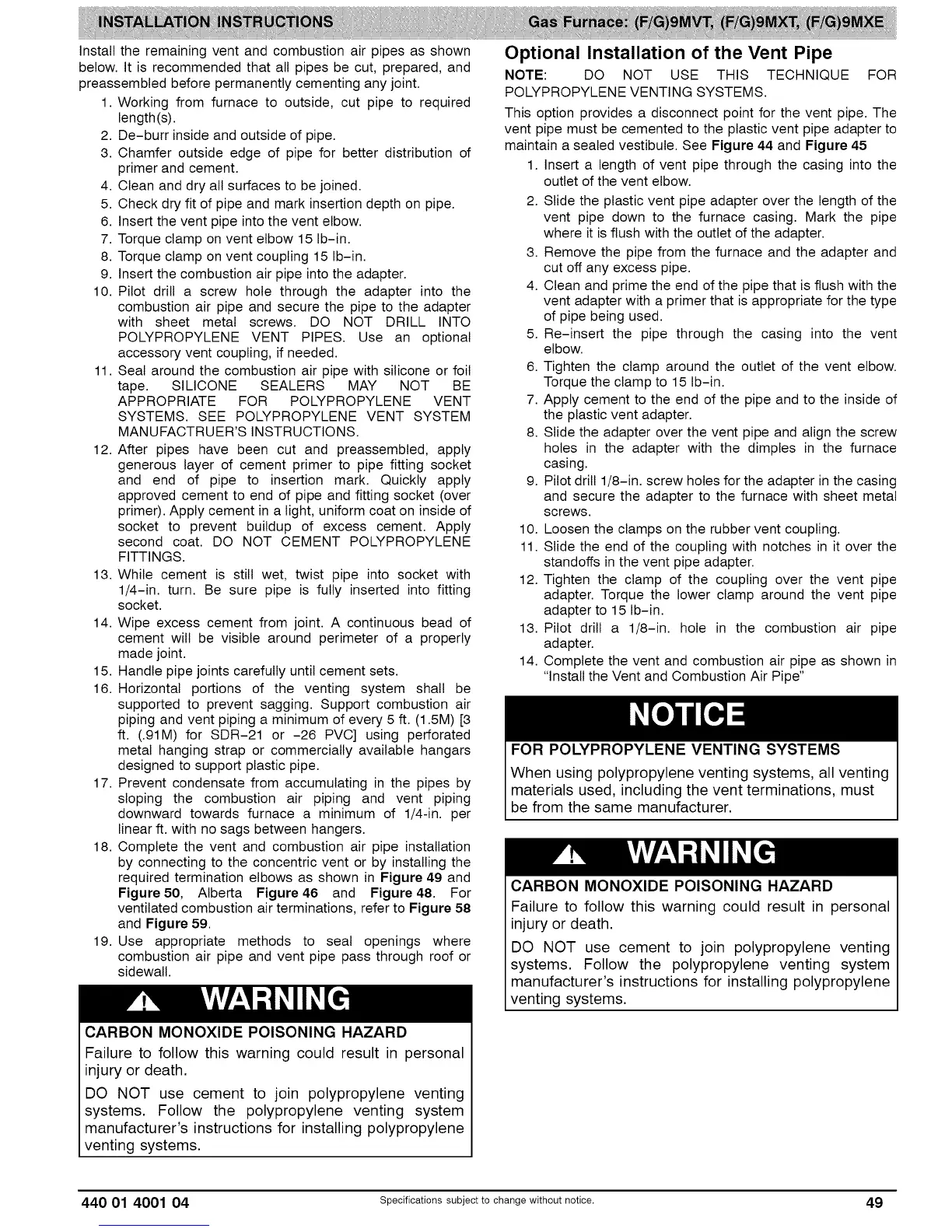 systems. Follow the polypropylene venting system