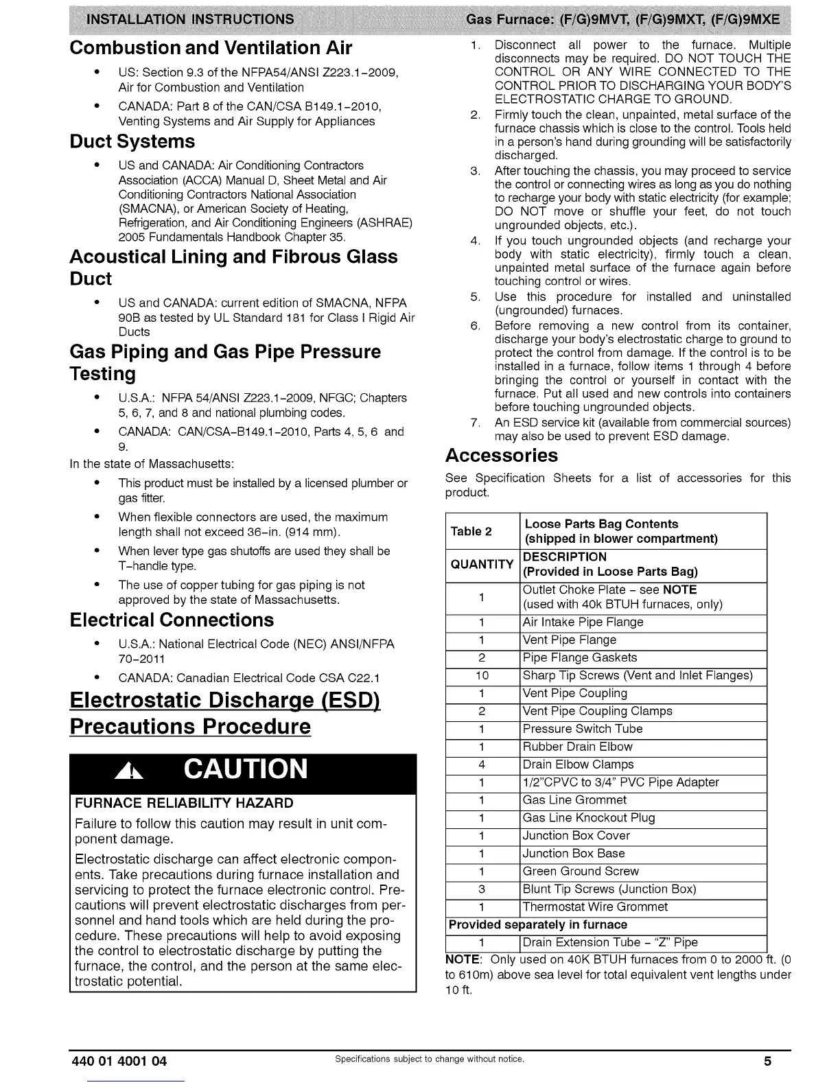 440 01 4001 04 Specifications subject to change without notice. 5
