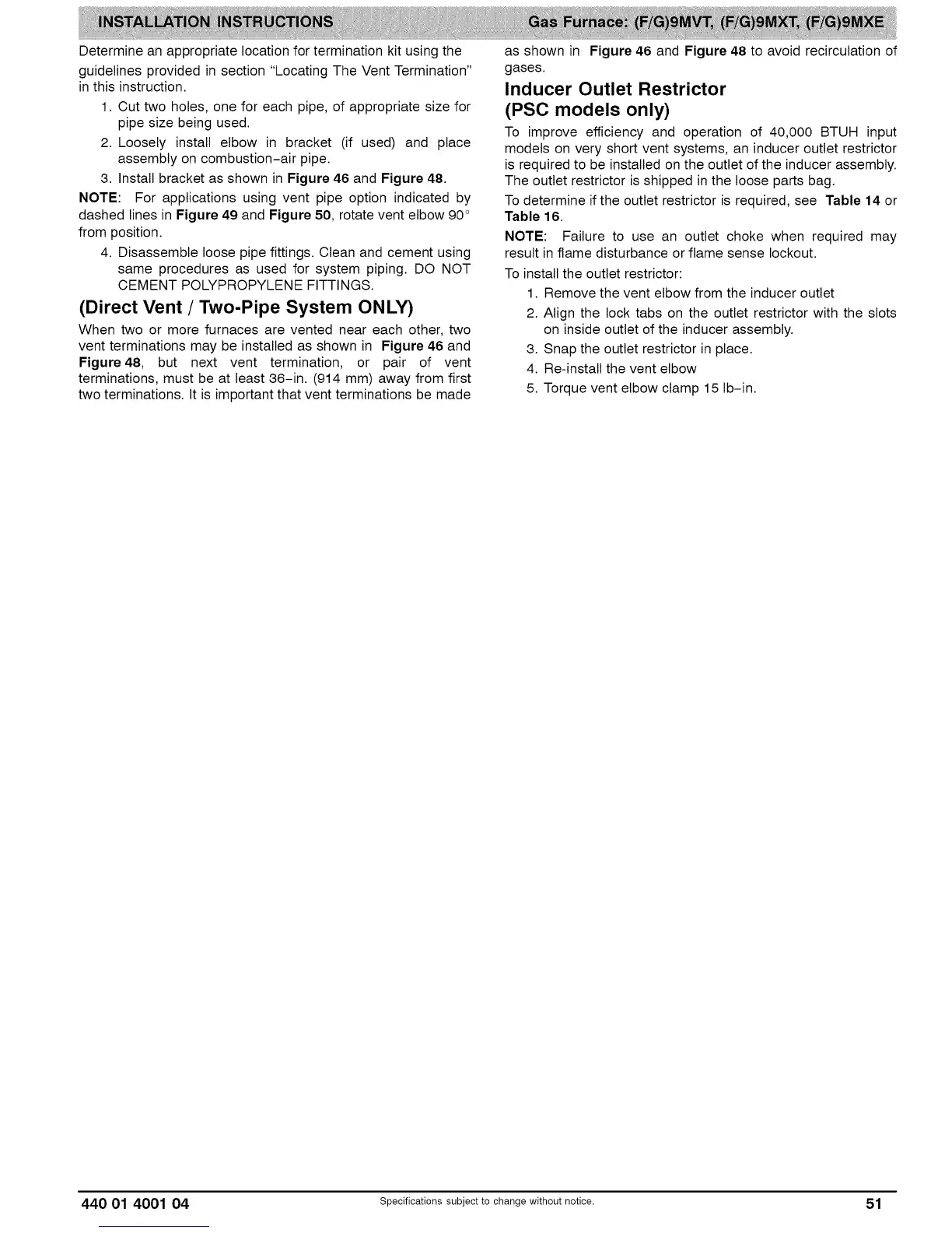 440 01 4001 04 Specifications subject to change without notice. 51
