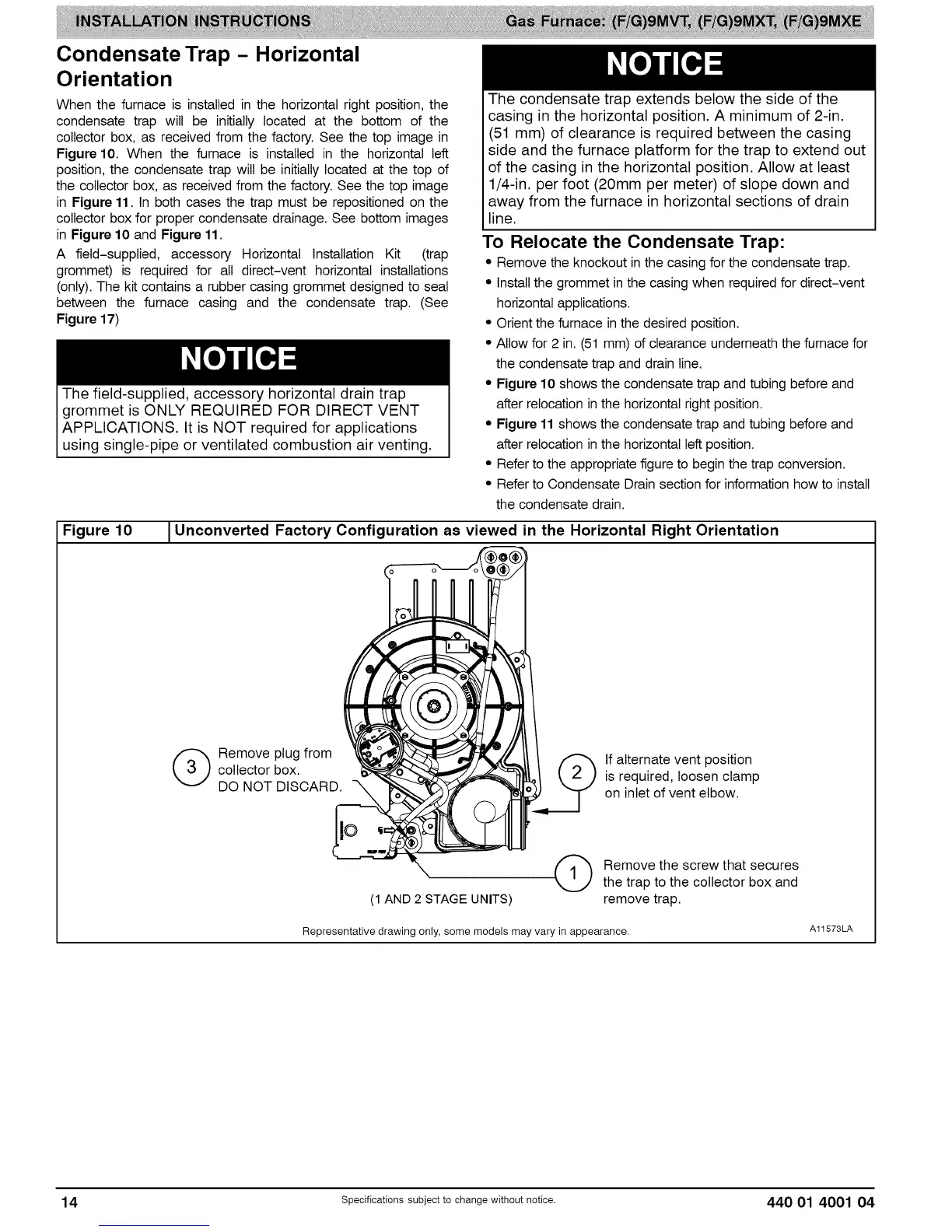 ICP G9MXE - Condensate Trap - Horizontal Orientation; Relocating the Condensate Trap
