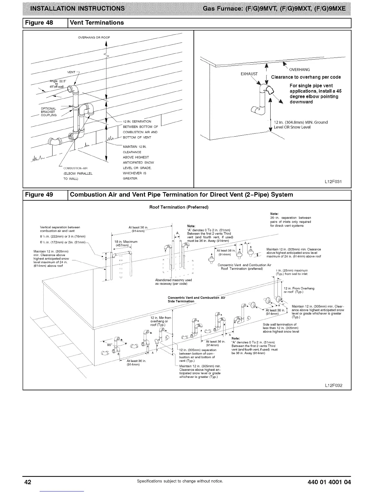 Figure 49 l Combustion Air and Vent Pipe Termination for Direct Vent (2-Pipe) System