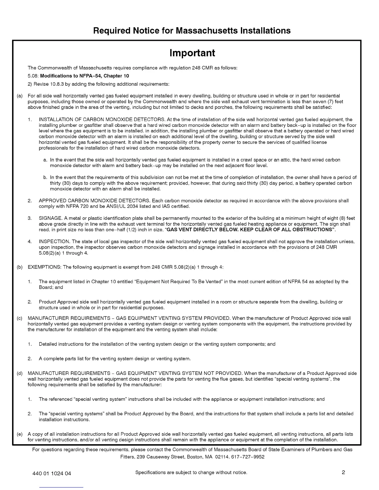 The Commonwealth of Massachusetts requires compliance with regulation 248 CMR as follows: