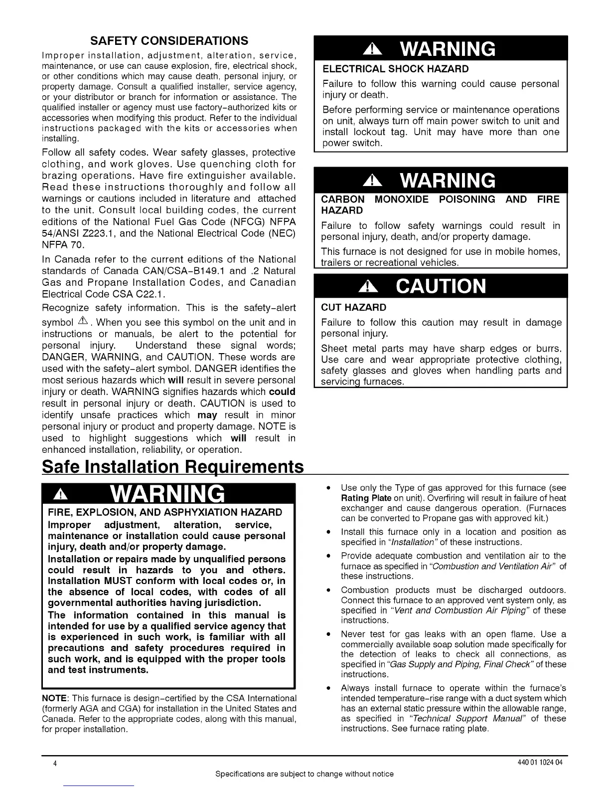 NOTE: This furnace is design-certified by the CSA International