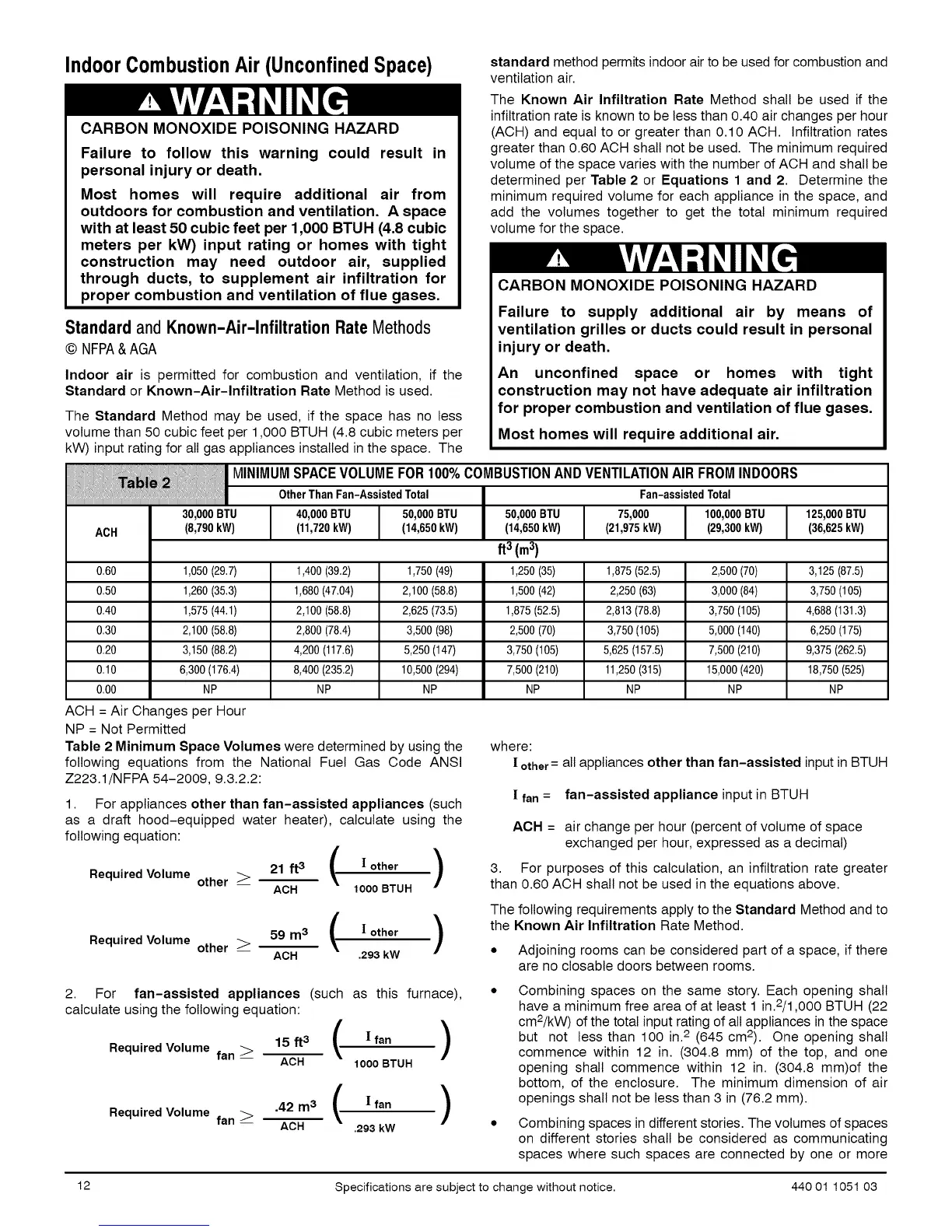 i .-,-,_ =. MINIMUM SPACE VOLUME FOR 100% COMBUSTION AND VENTILATION AIR FROM INDOORS