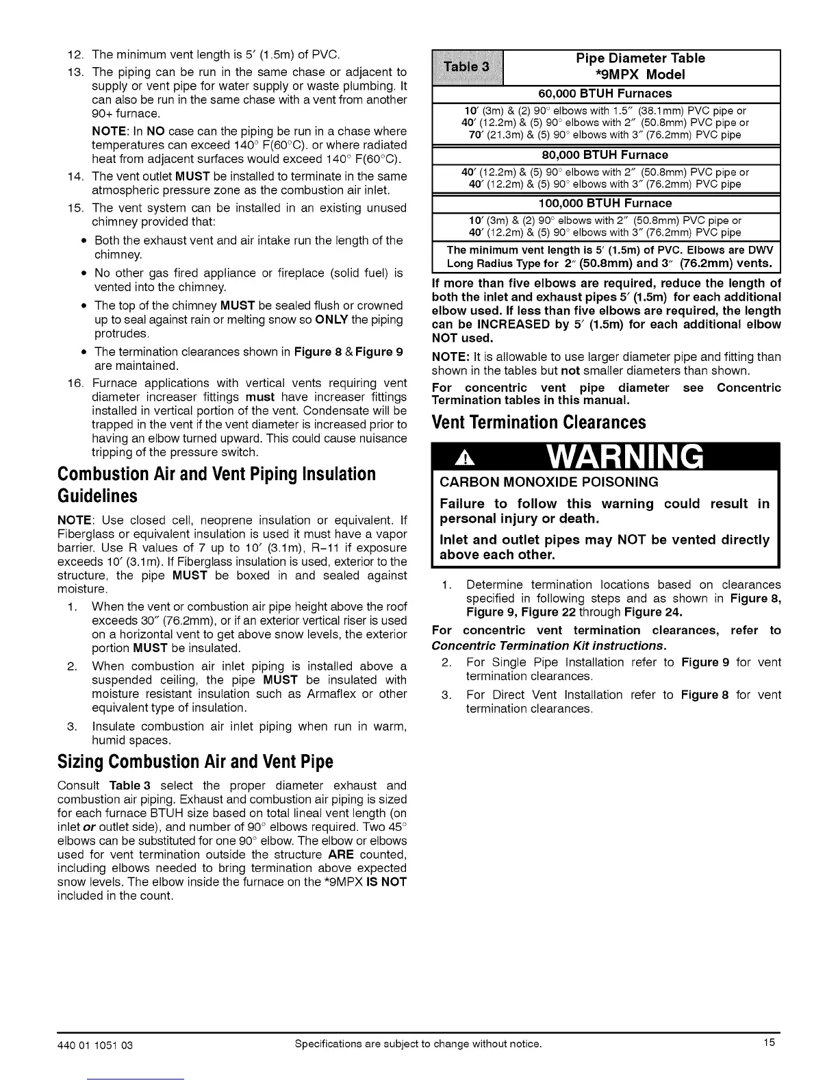 3. Insulate combustion air inlet piping when run in warm,