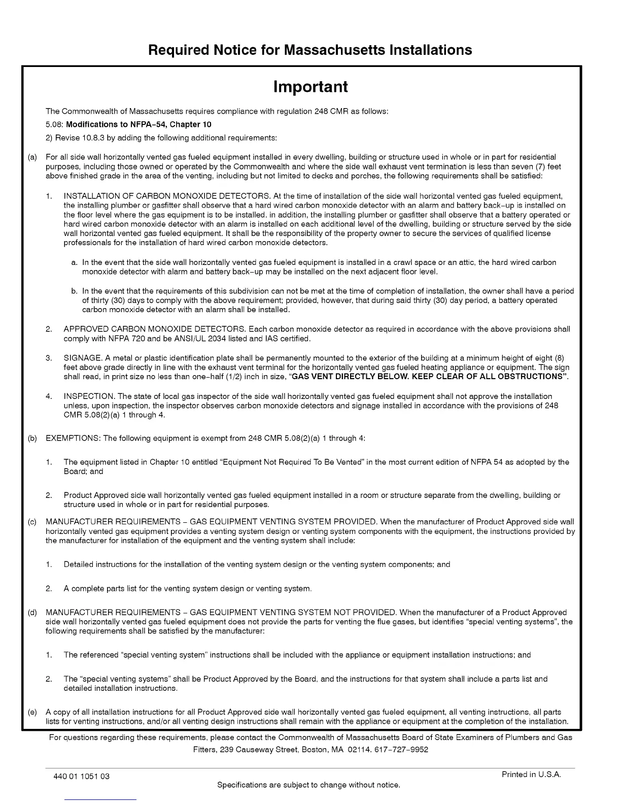 The Commonwealth of Massachusetts requires compliance with regulation 248 CMR as follows: