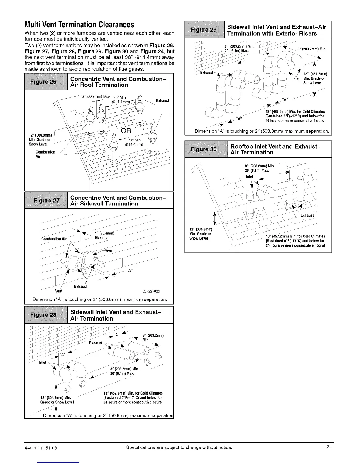 12" (304.8mm) Min. - [Sustained 0°F(-17°C) and below for