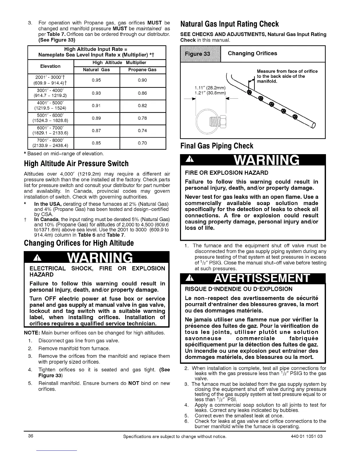 1- In Canada, the input rating must be derated 5% (Natural Gas)