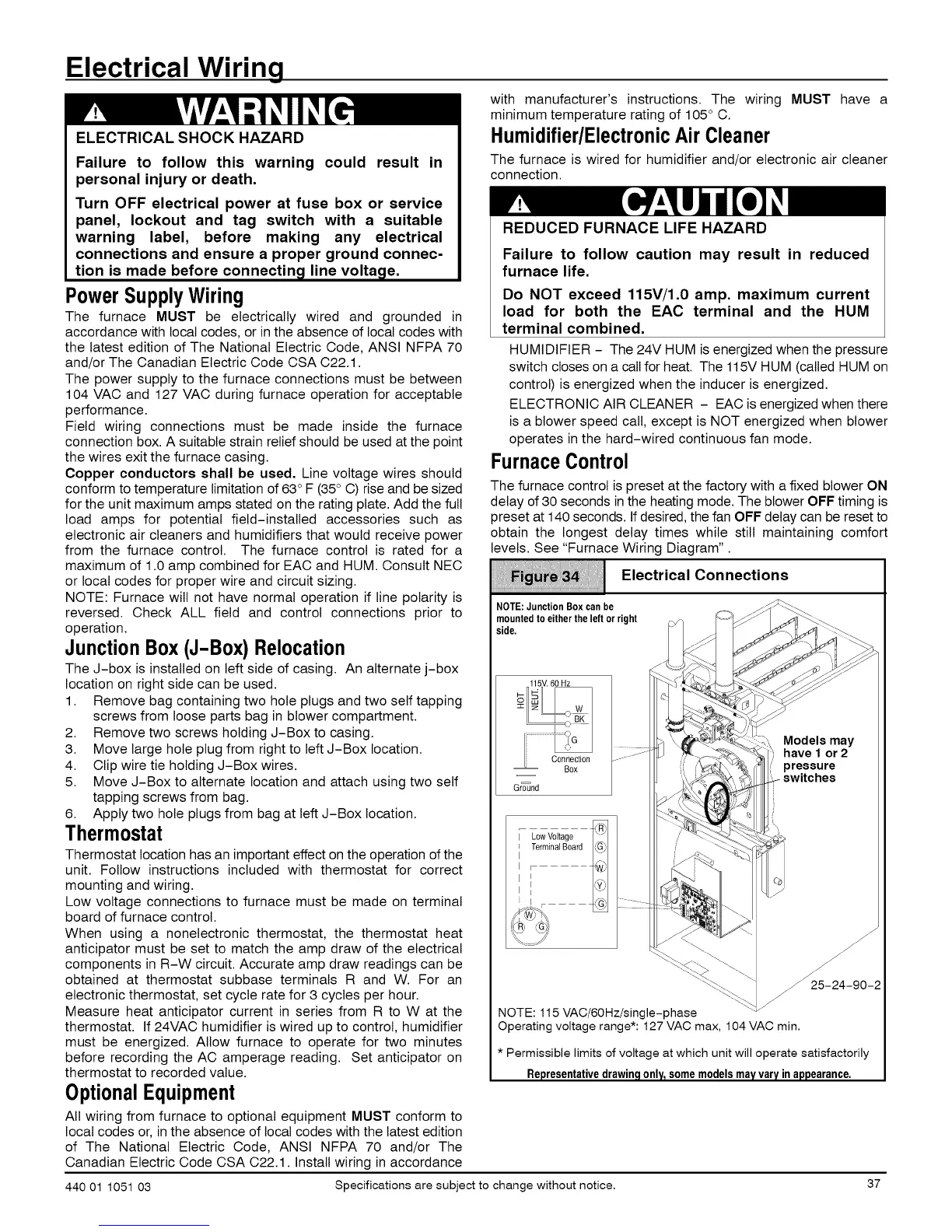 104 VAC and 127 VAC during furnace operation for acceptable