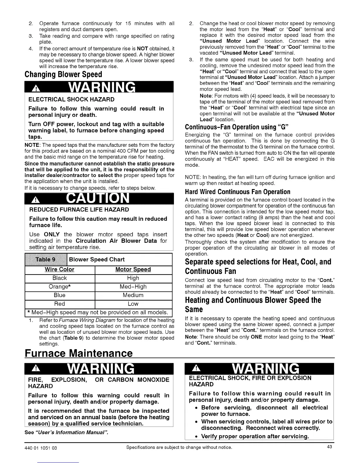 warning label, to furnace before changing speed