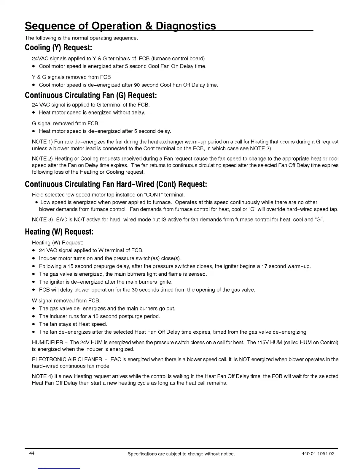 NOTE 1) Furnace de-energizes the fan during the heat exchanger warm-up period on a call for Heating that occurs during a G request