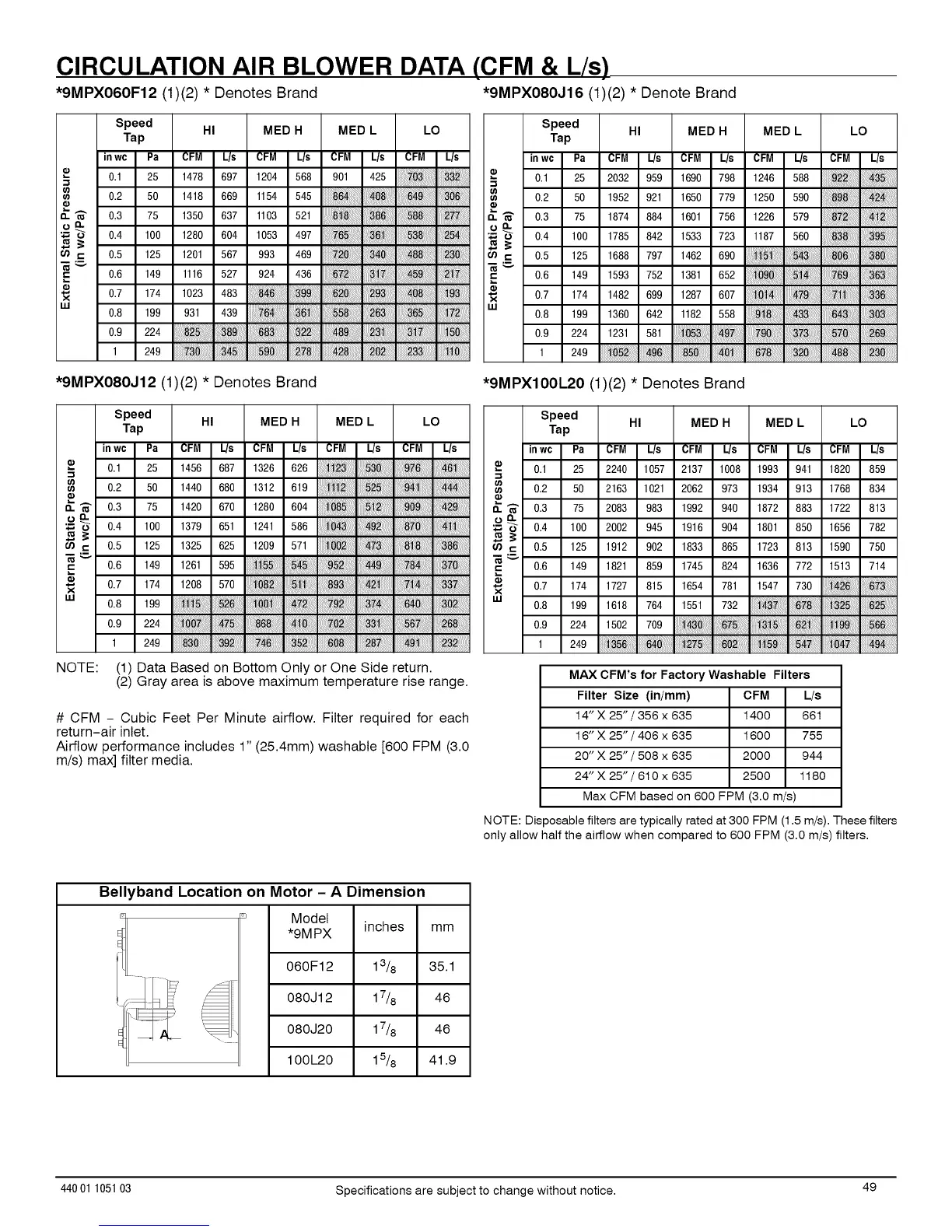 CIRCULATION AIR BLOWER DATA (CFM & L/s)