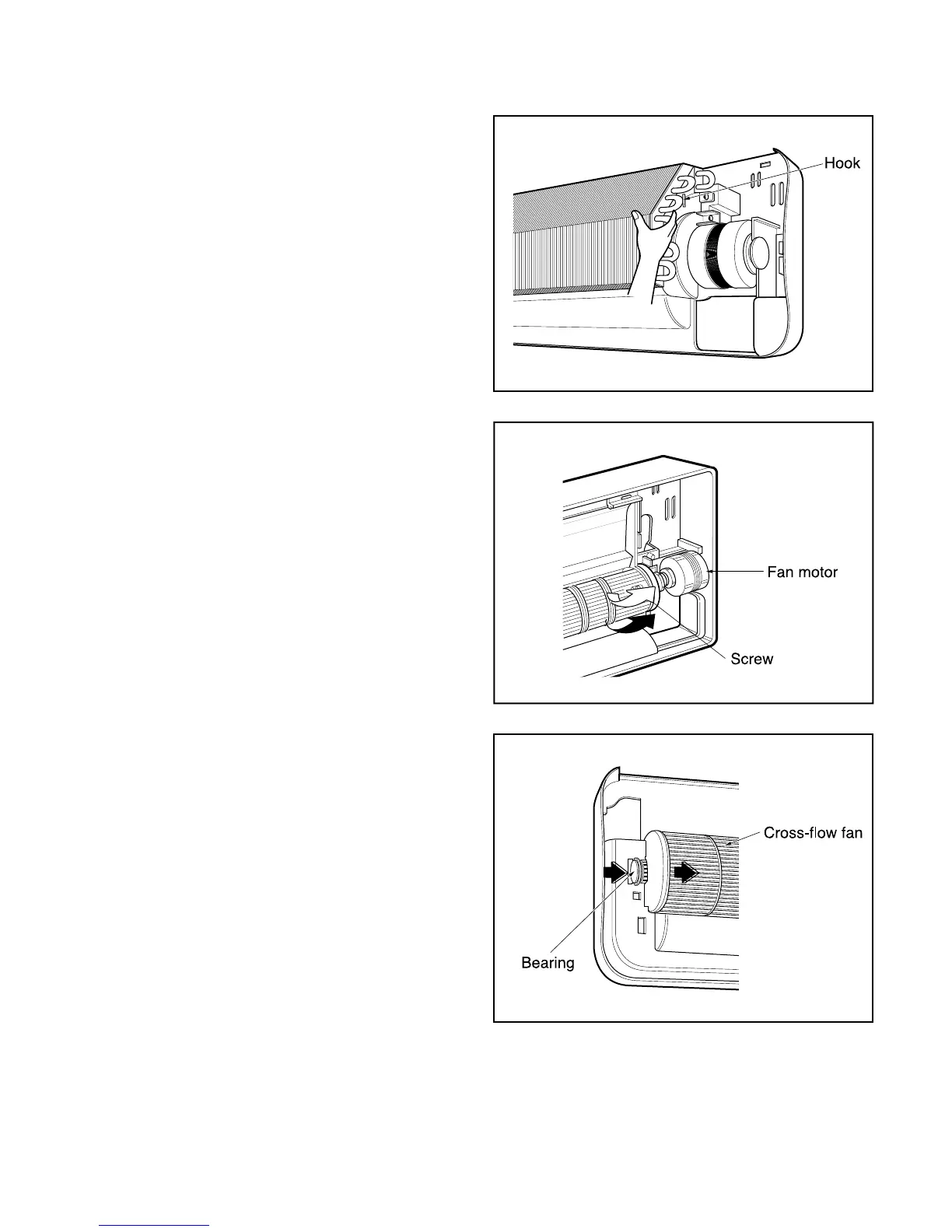 • Remove the left end of the cross-flow fan from
