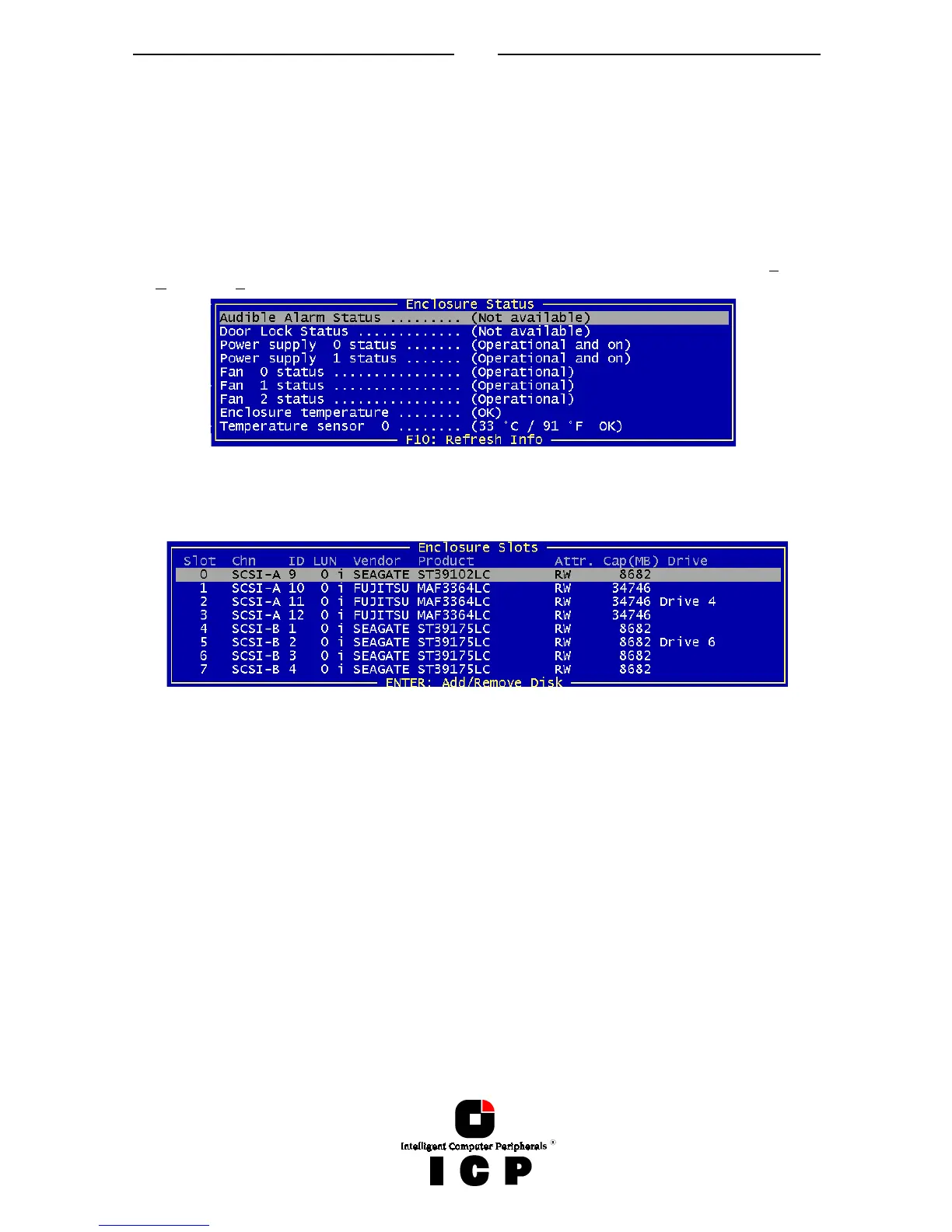After selecting this option you can either view the Enclosure Status or view/configure the