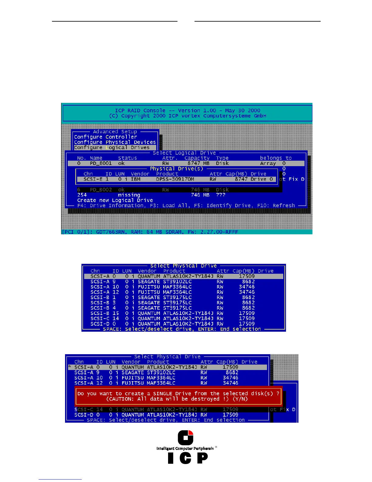 To configure and setup an new Logical Drive, select Create new Logical Drive. ICPCON dis-