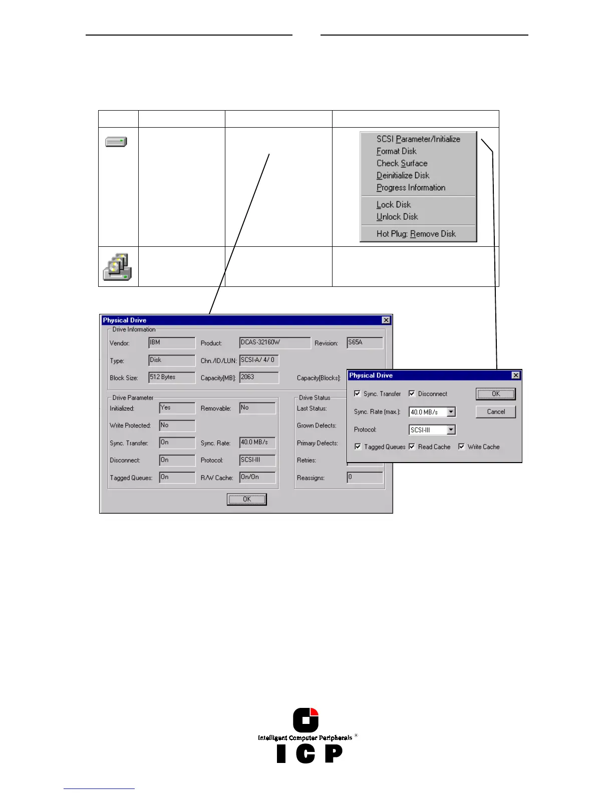 The SCSI parameters configure a Physical Drive (especially its performance). By changing