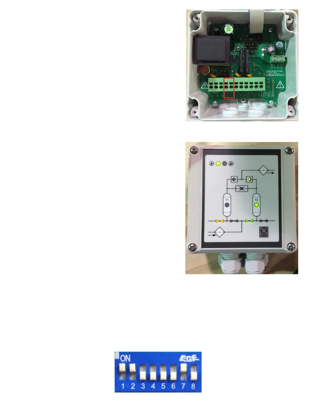 Three DIP switches are used to set the tower regeneration time