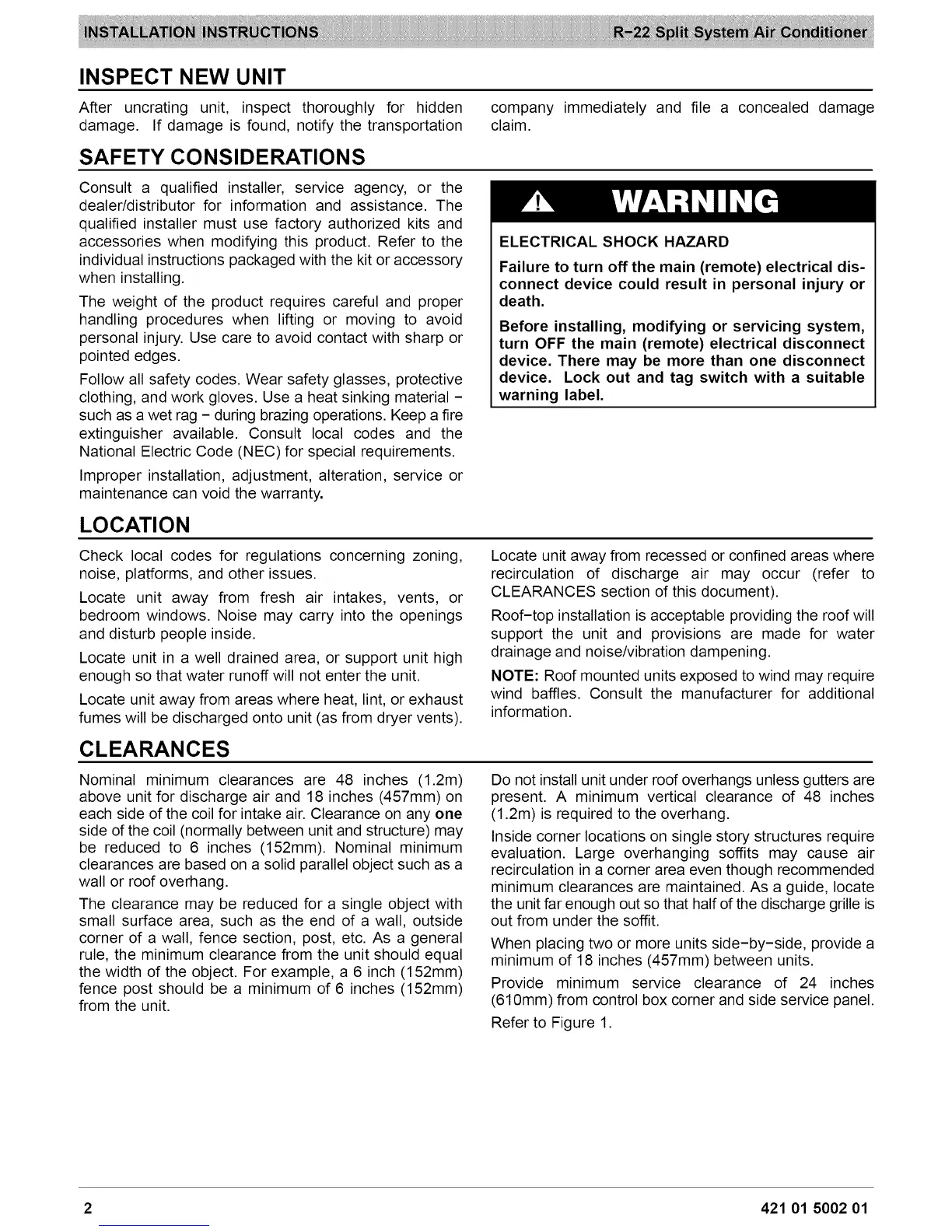 above unit for discharge air and 18 inches (457mm) on