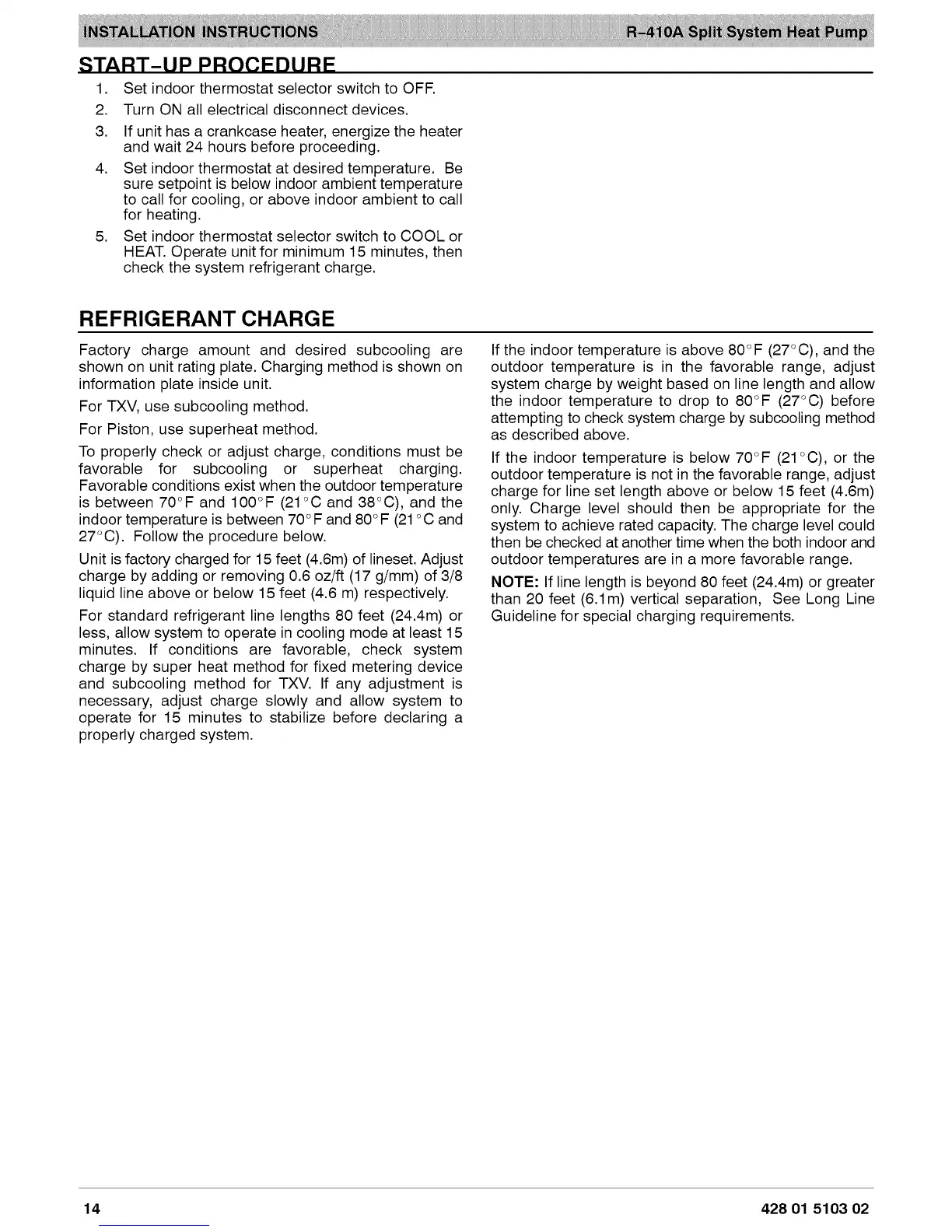 For standard refrigerant line lengths 80 feet (24.4m) or