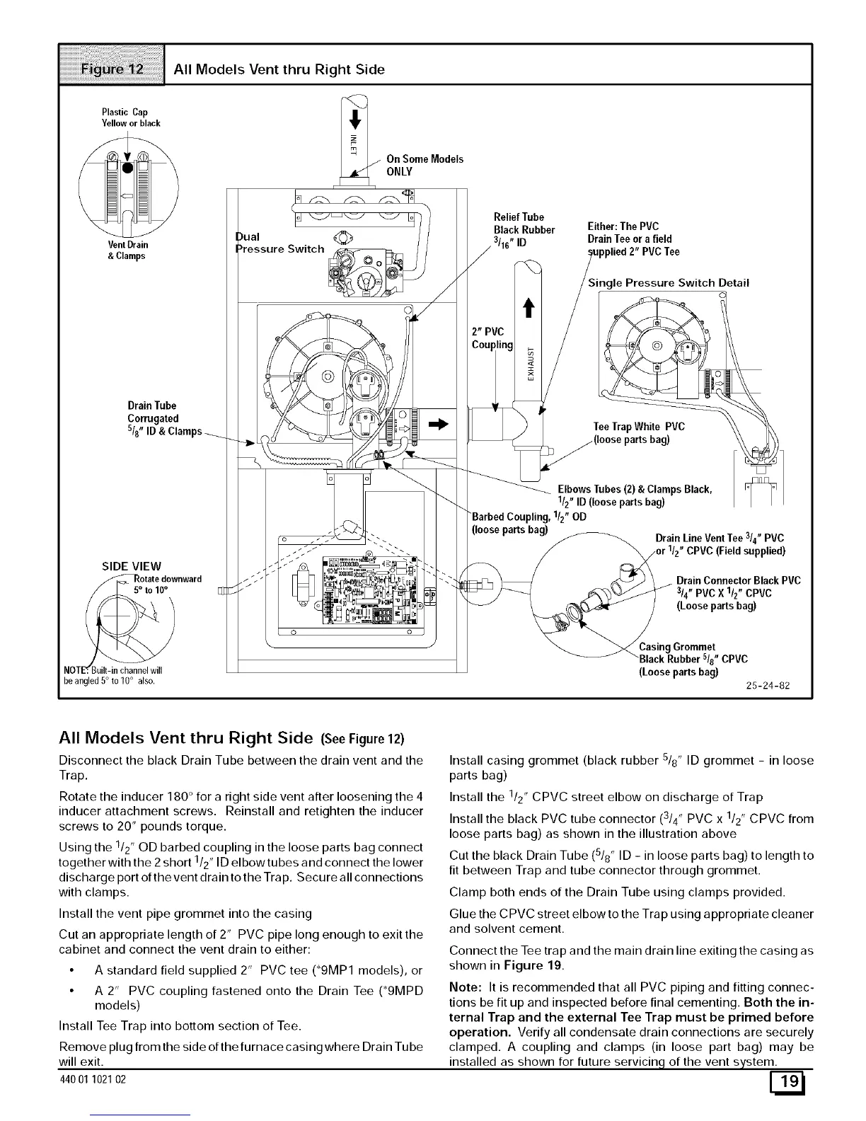 Rotate the inducer 180 ° for a right side vent after loosening the 4