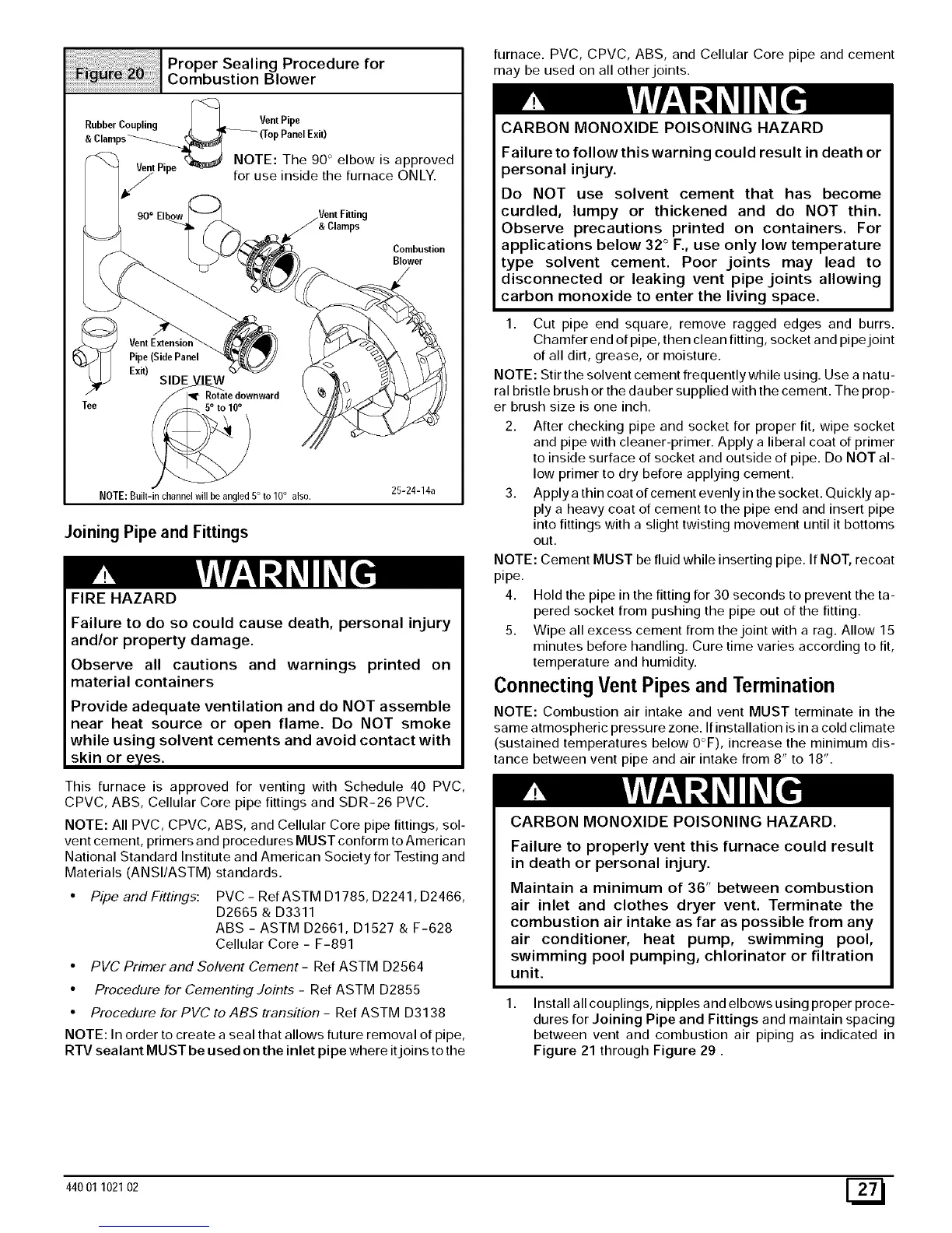 furnace. PVC, CPVC, ABS, and Cellular Core pipe and cement