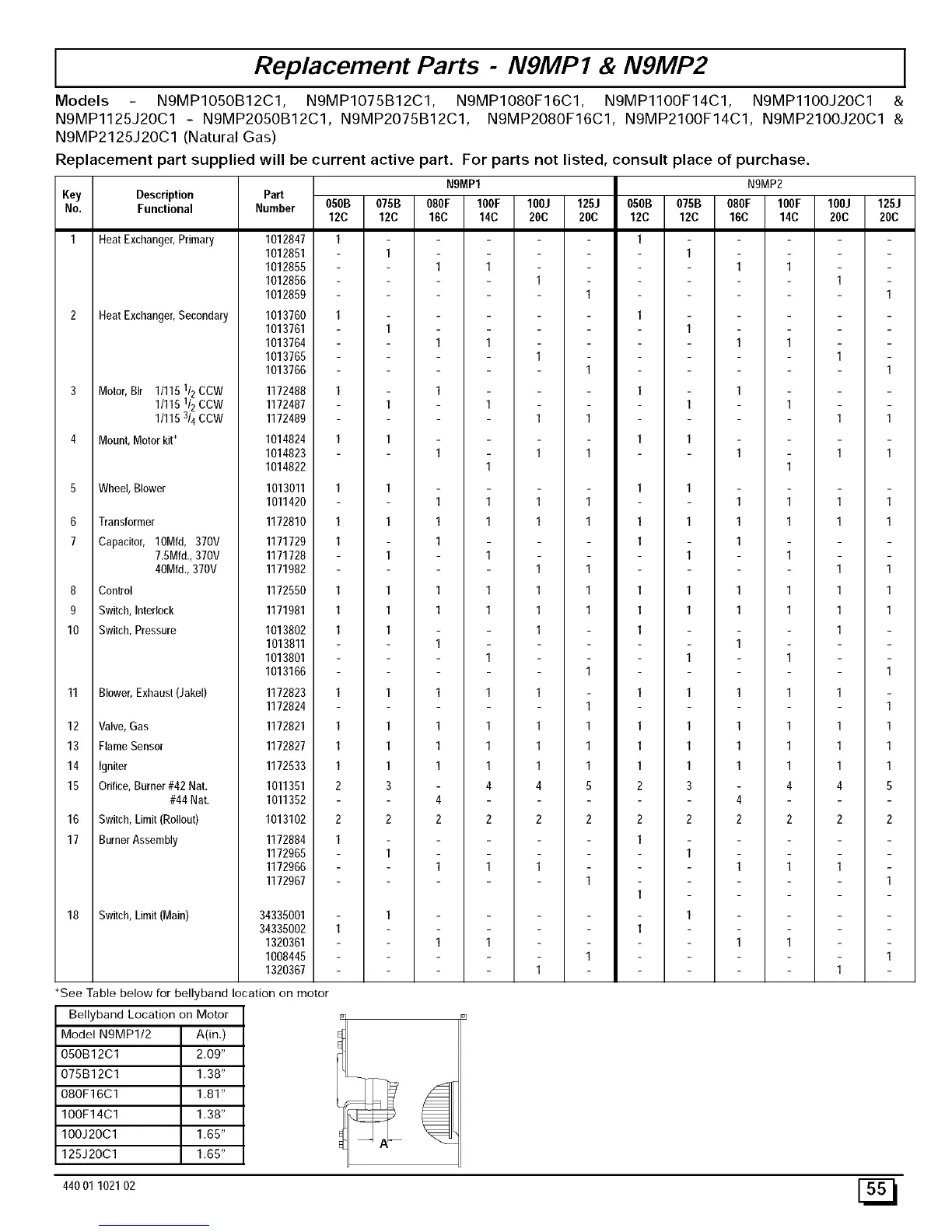 Models N9MP1050B12C1, N9MP1075B12C1, N9MP1080F16C1, N9MP1100F14C1, N9MP1100J20C1 &
