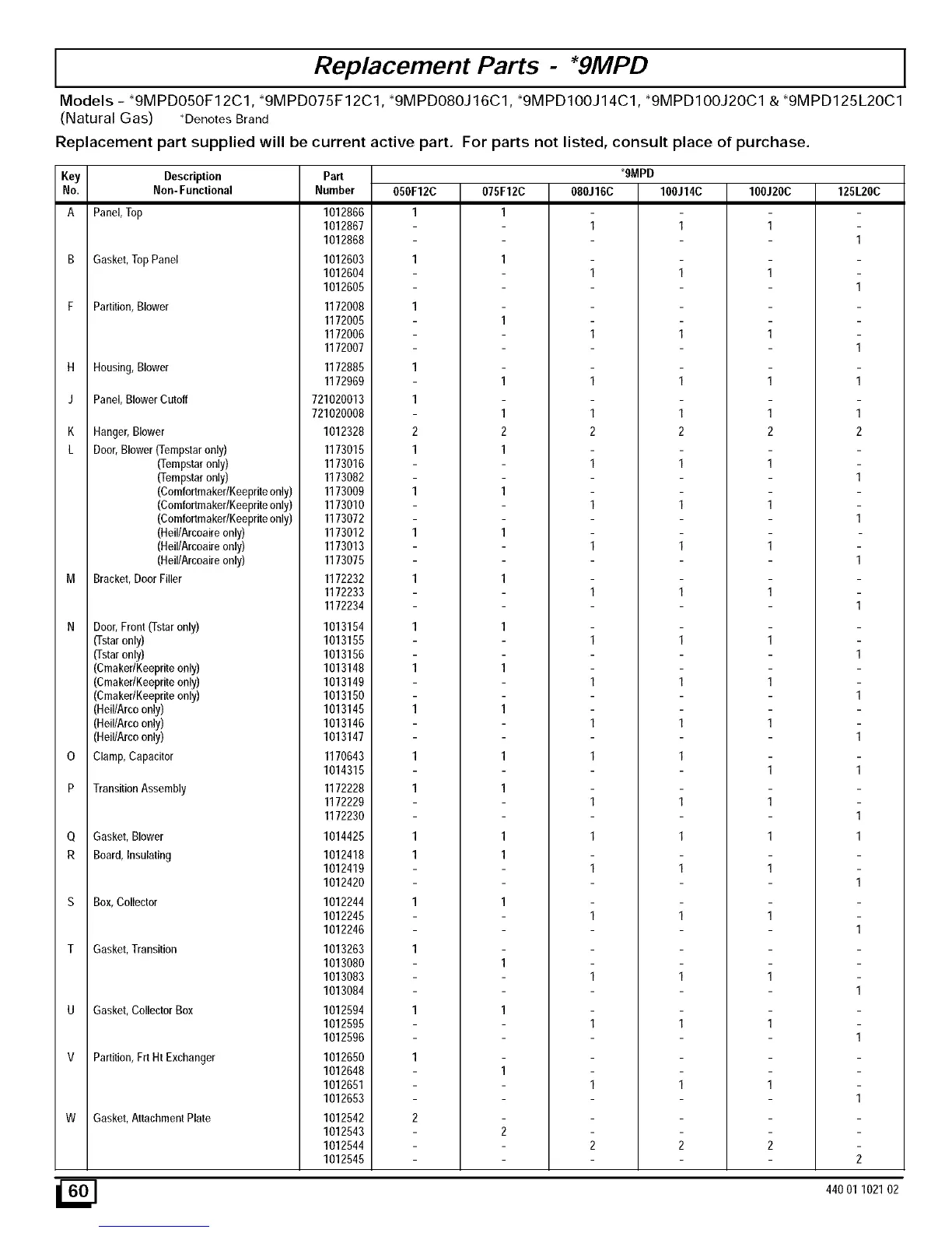 Models - _9MPDO5OF12C1, _9MPDO75F12C1, _9MPDO80J16C1, _9MPD100J14C1, _9MPDIOOJ20C1 & _9MPD125L20C1
