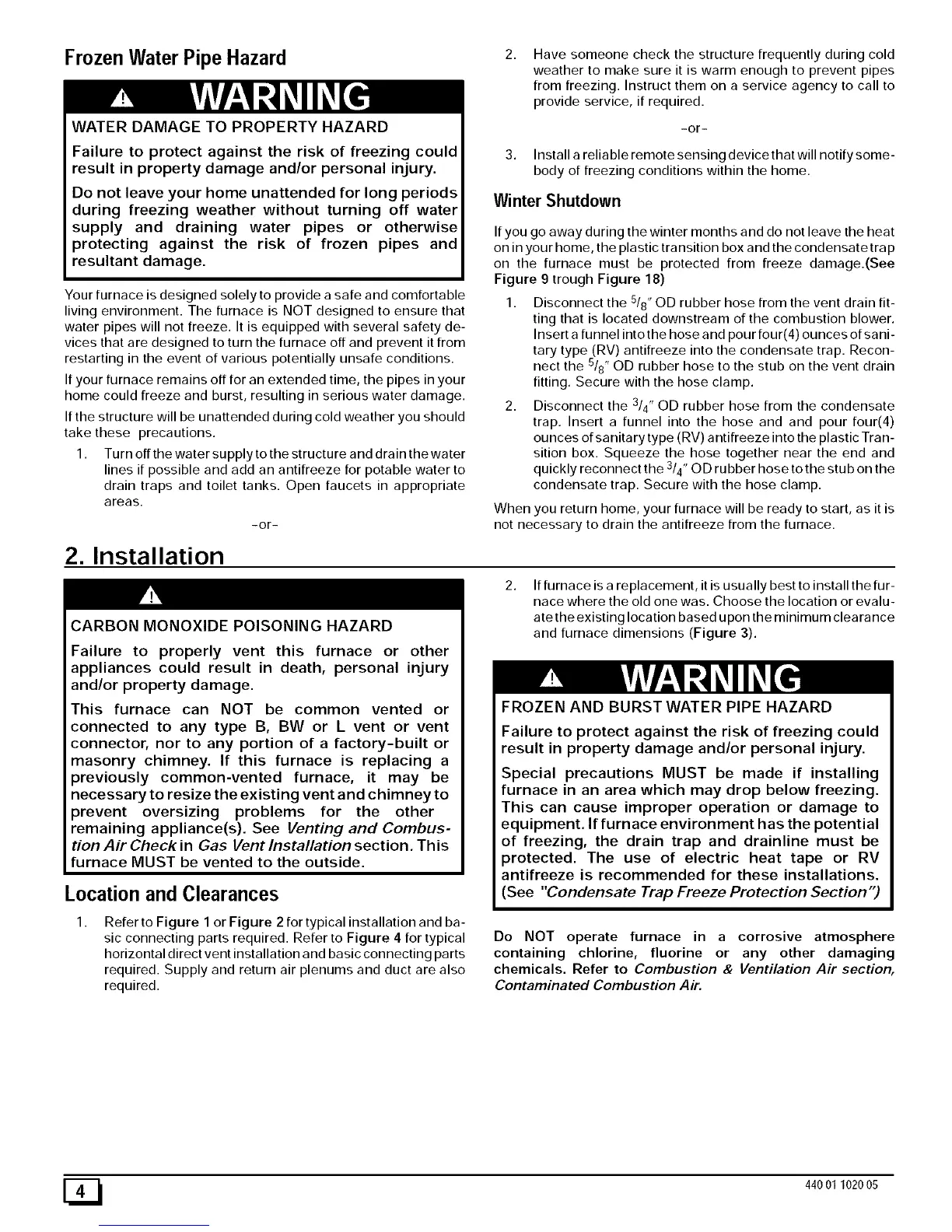 tary type (RV) antifreeze into the condensate trap. Recon-