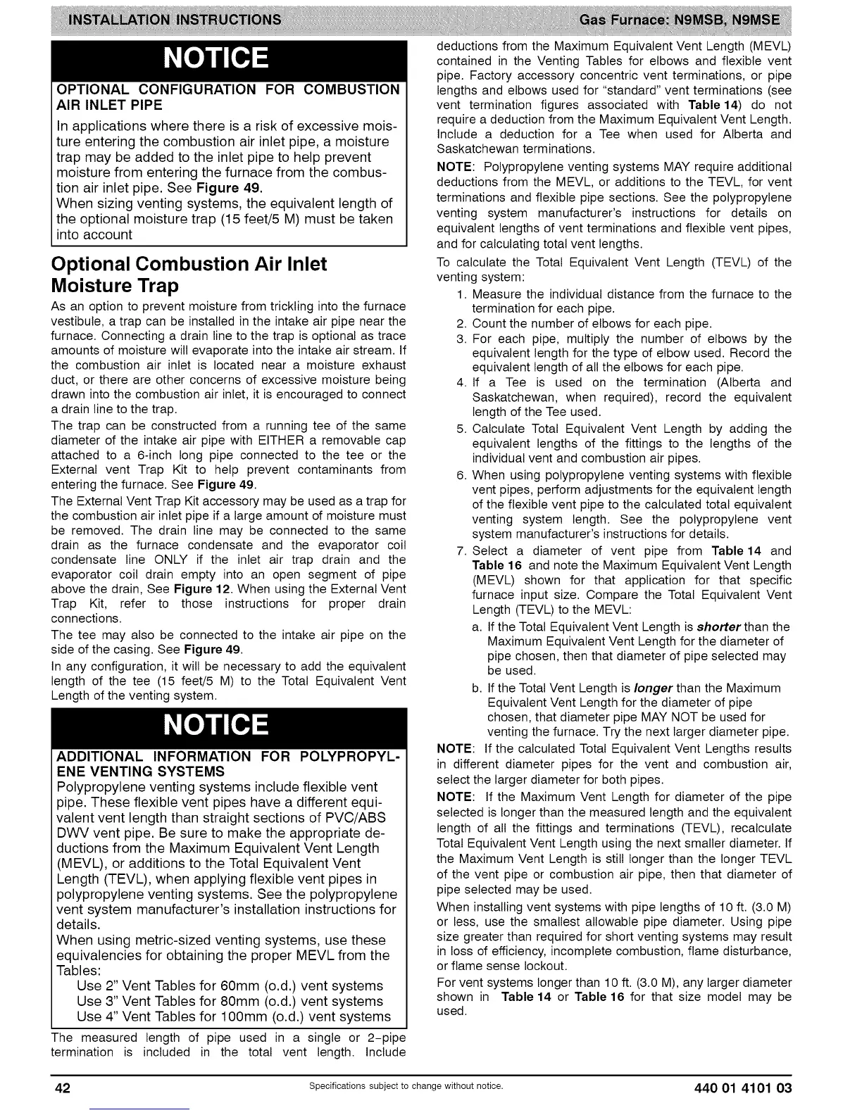 venting system length. See the polypropylene vent