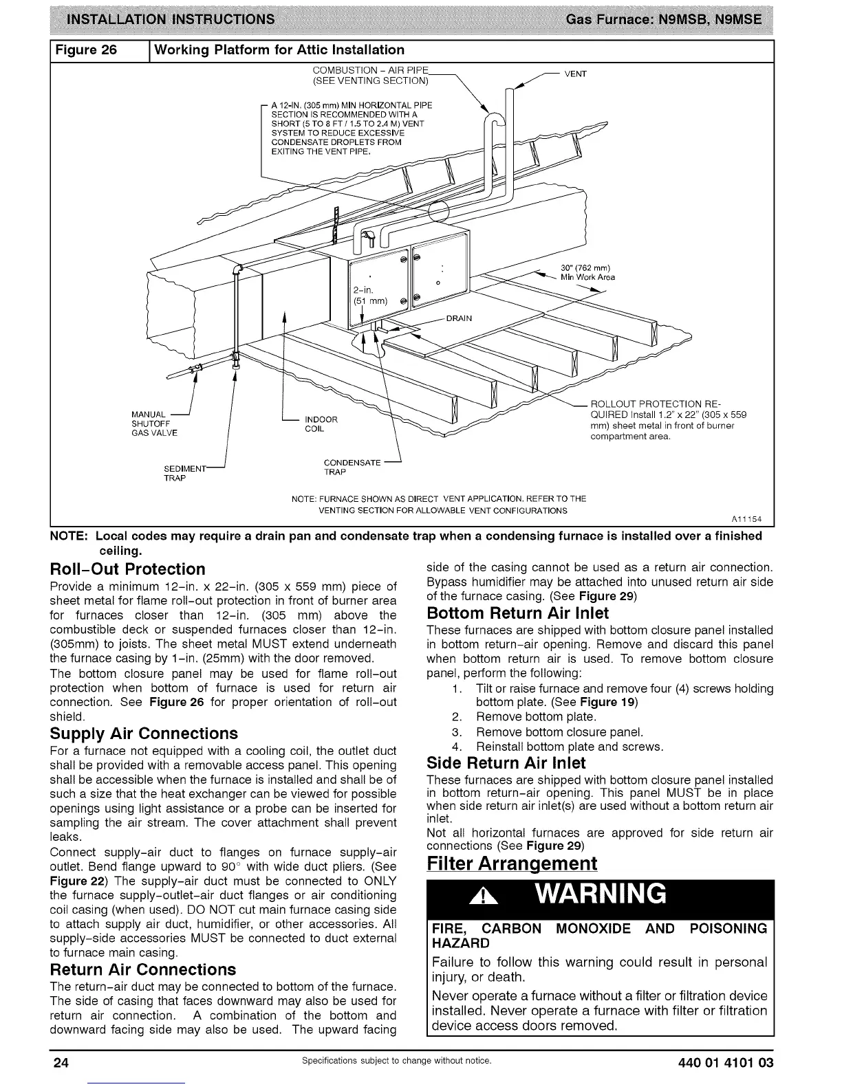installed. Never operate a furnace with filter or filtration