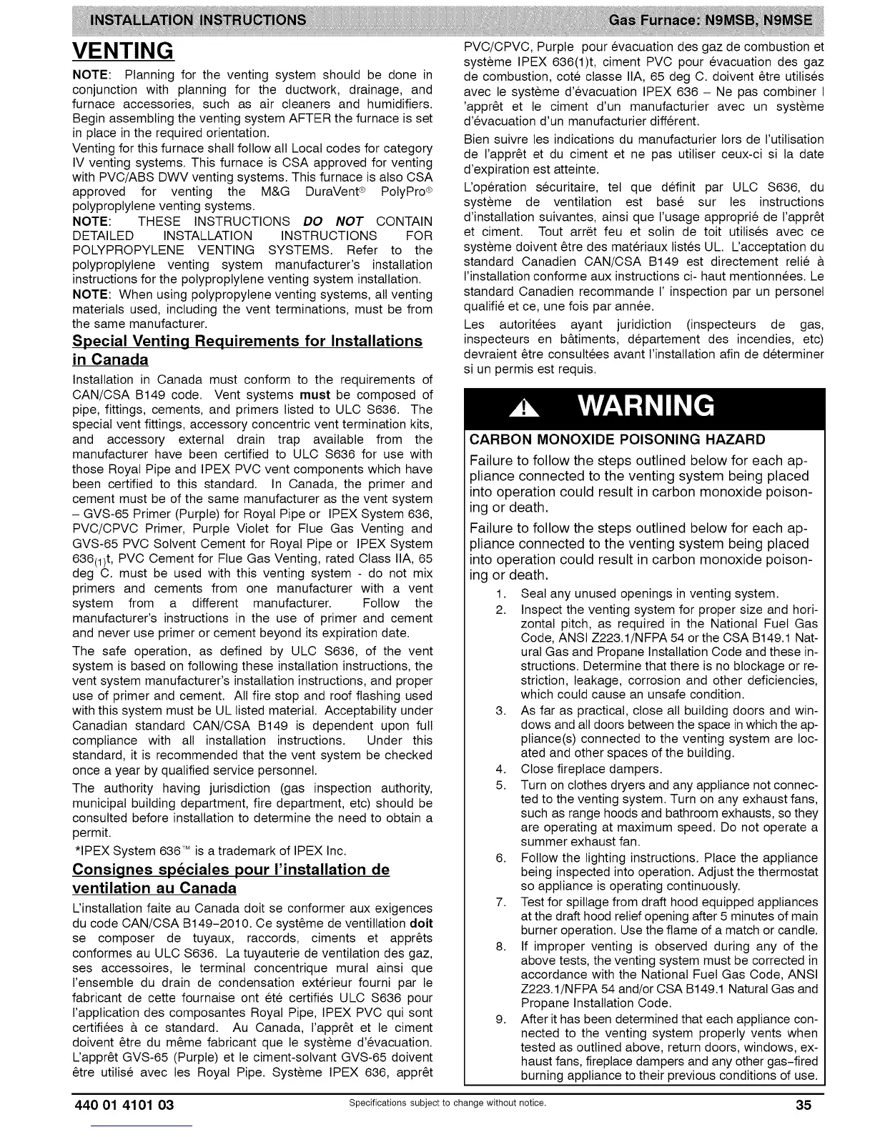 with PVC/ABS DWV venting systems. This furnace is also CSA
