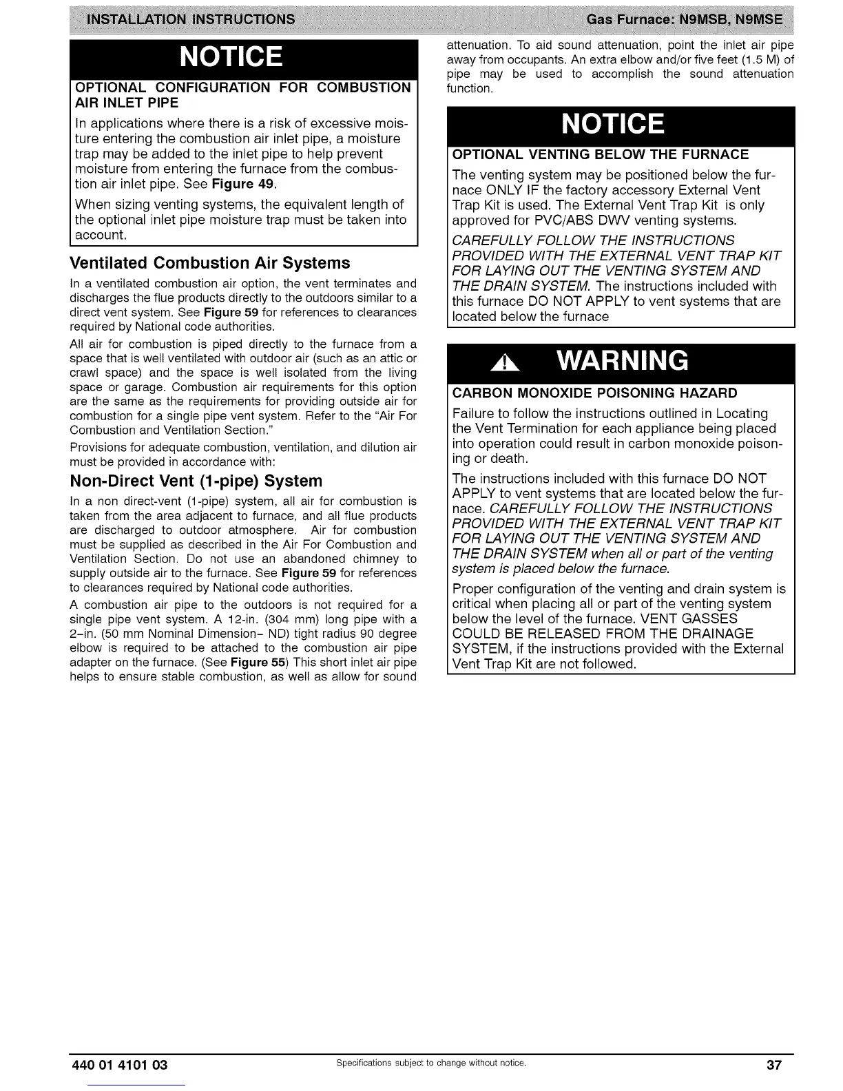 adapter on the furnace. (See Figure 55) This short inlet air pipe
