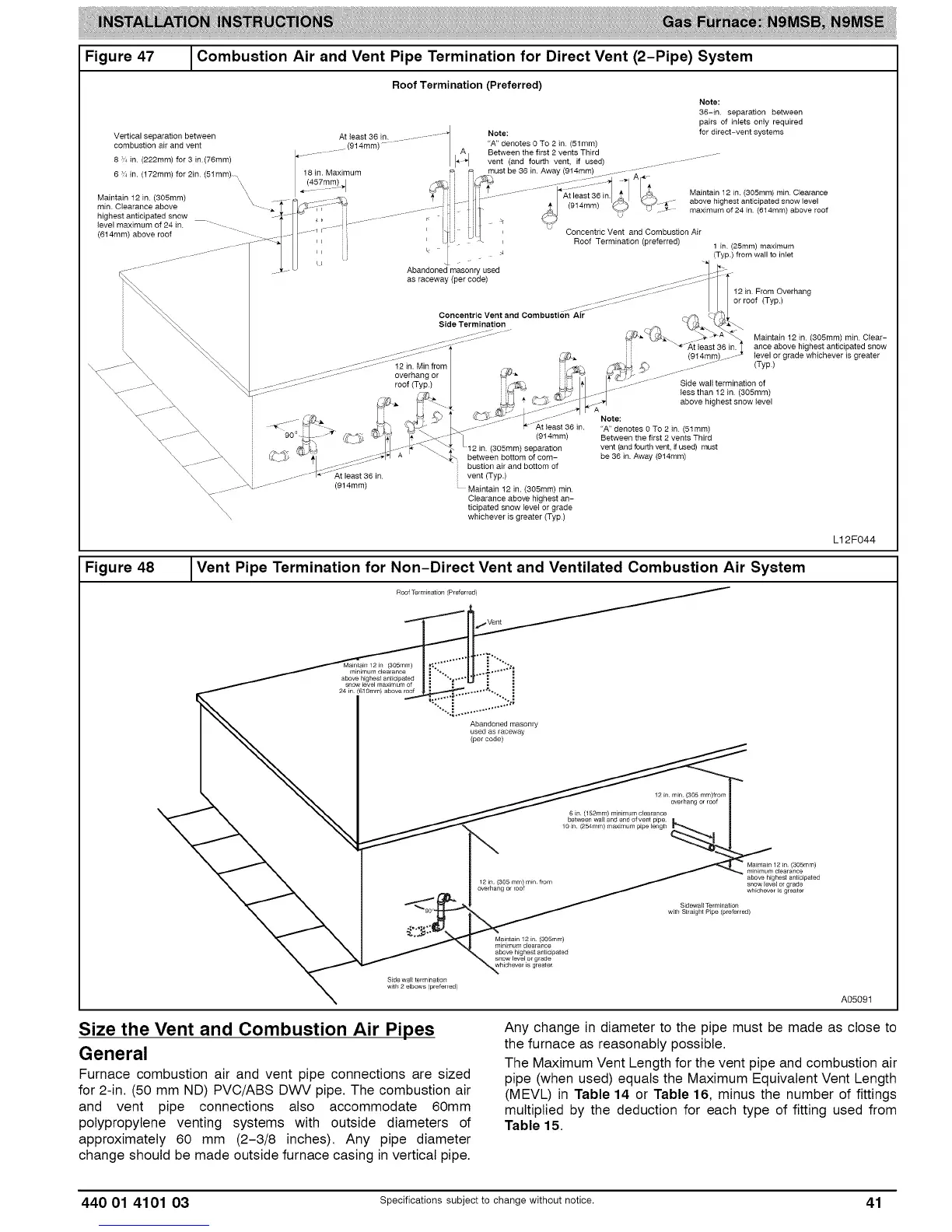 Figure47 _Combustion Air and Vent Pipe Termination for Direct Vent (2-Pipe) System