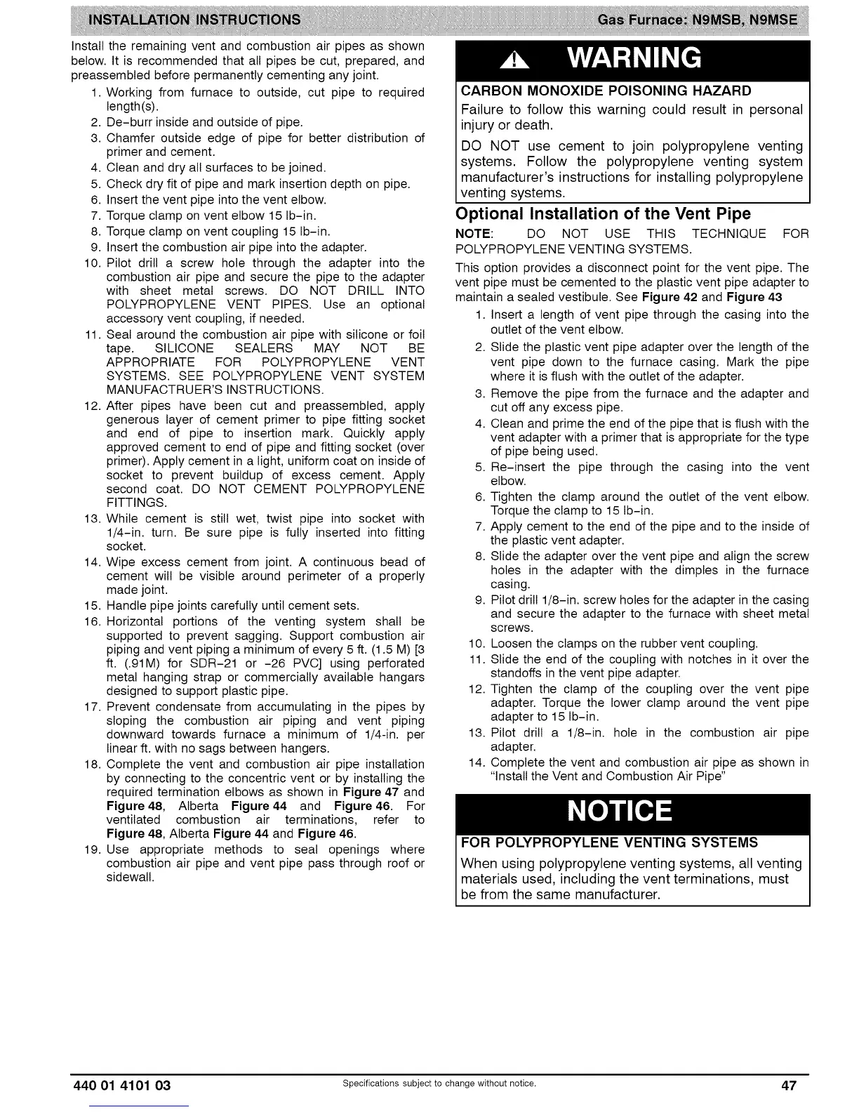 440 01 4101 03 Specificationssubjectto change without notice. 47