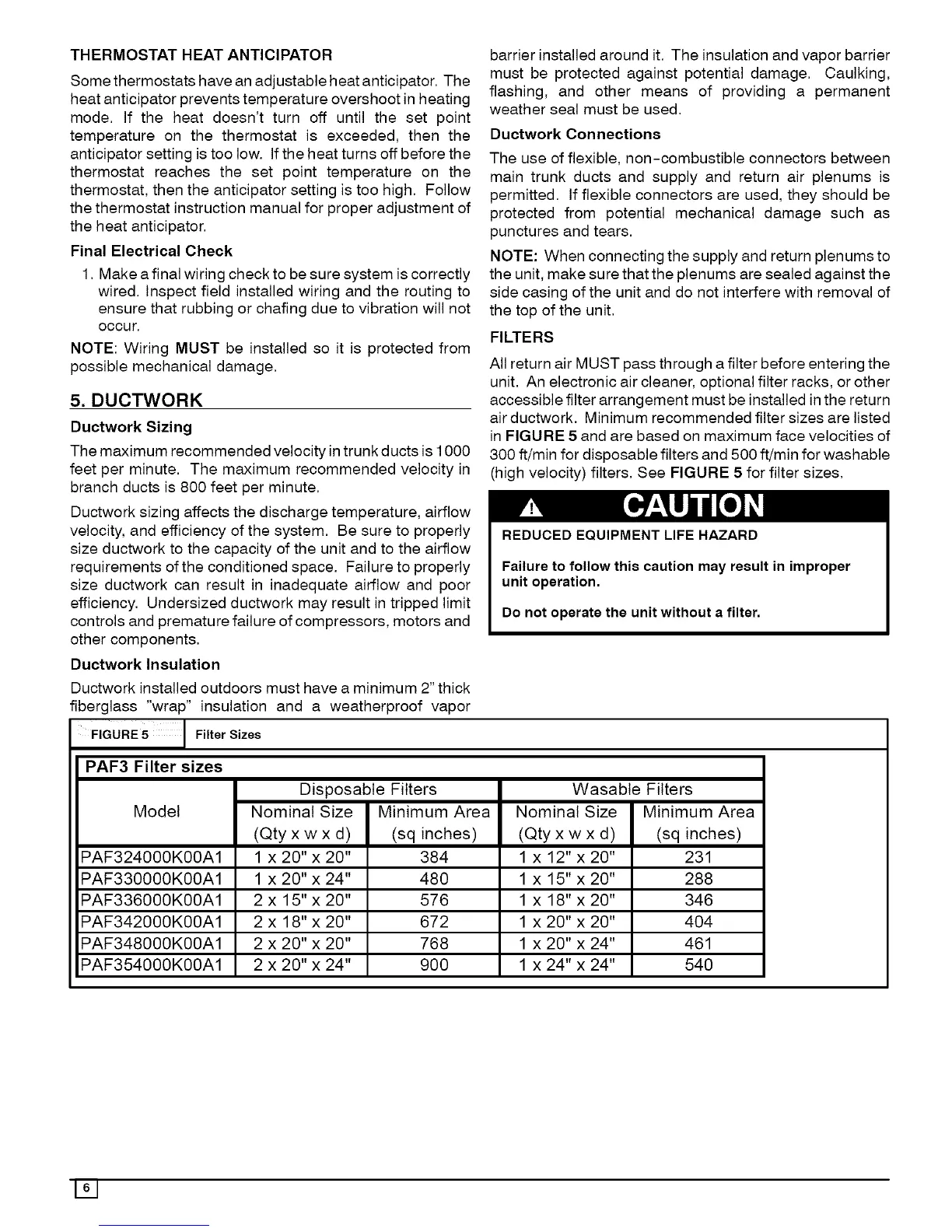 ICP PAF336000K00A1 - Thermostat Heat Anticipator Adjustment; Final Electrical Check; Ductwork and Filters; Ductwork Sizing and Airflow