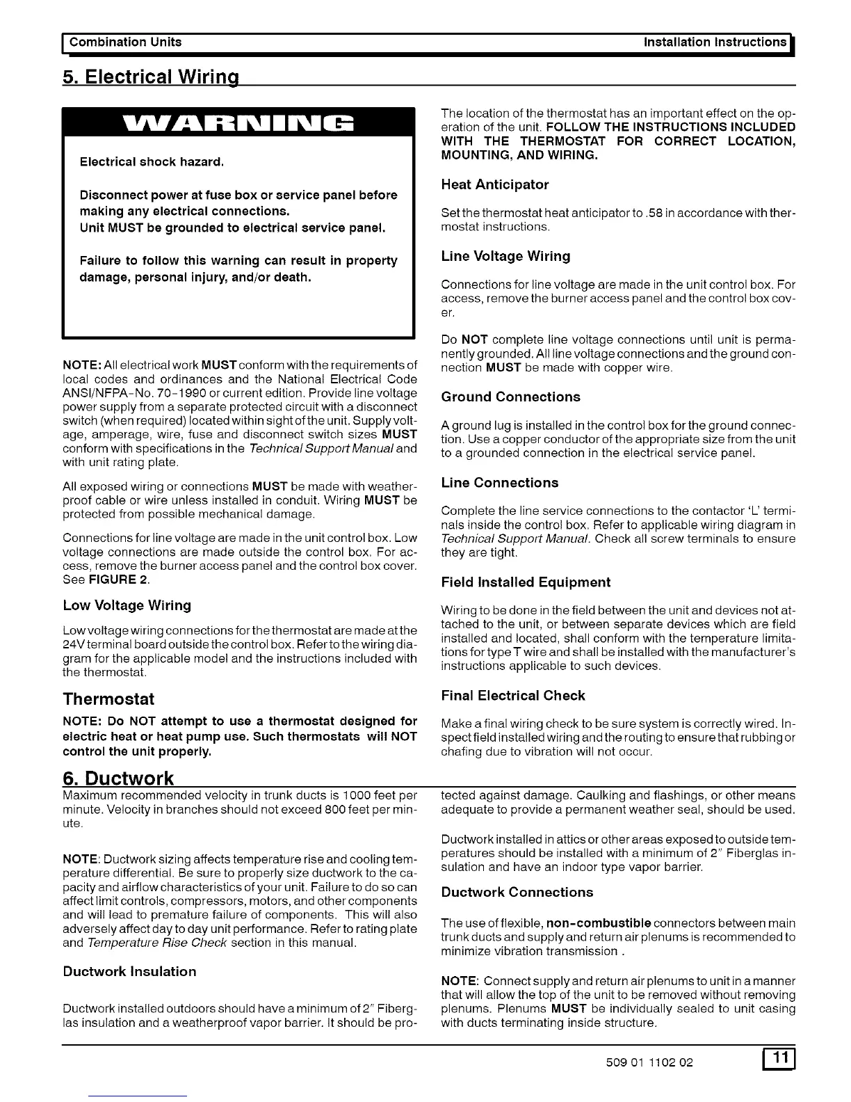 I Combination Units Installation Instructions