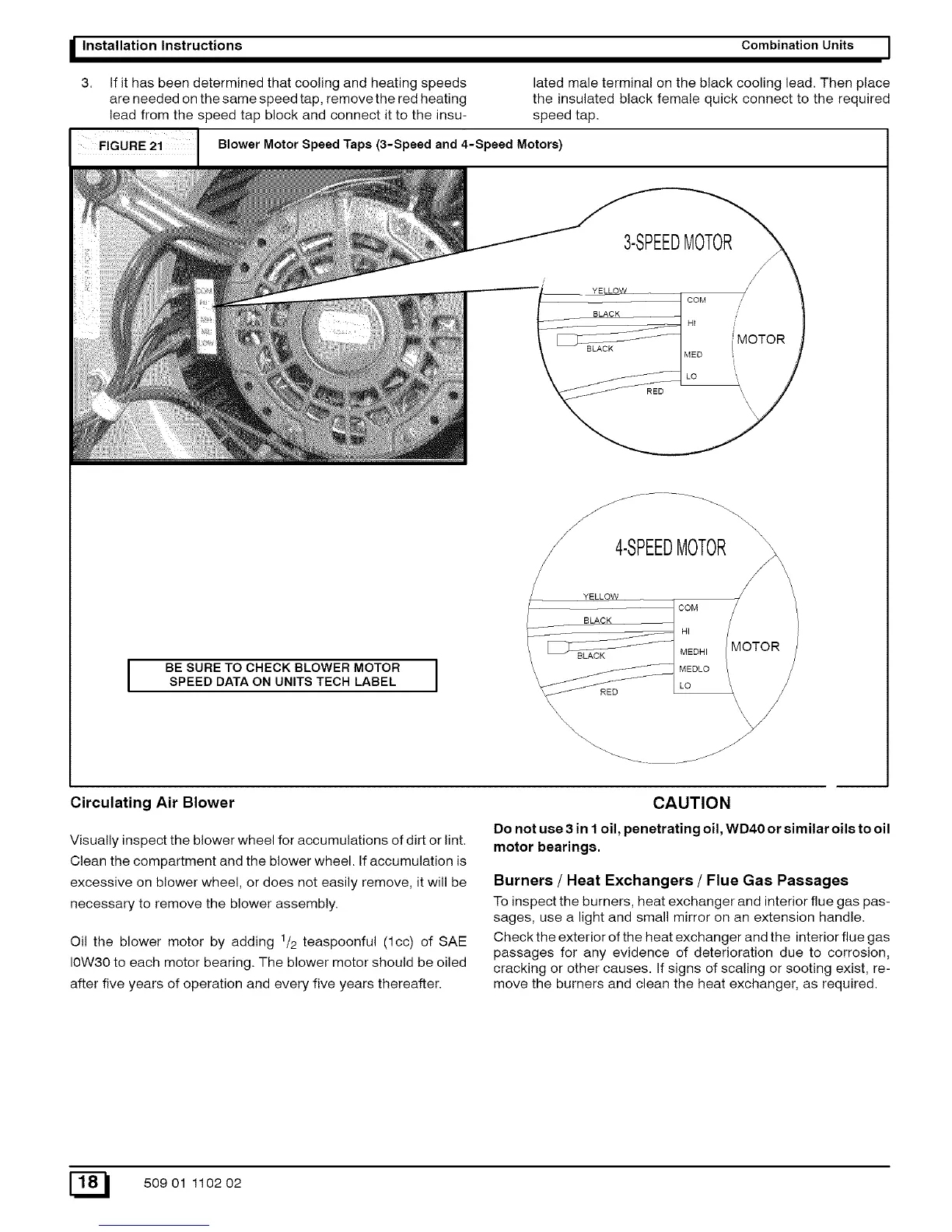 FIGURE 2i Blower Motor Speed Taps (3-Speed and ,-Speed Motors)