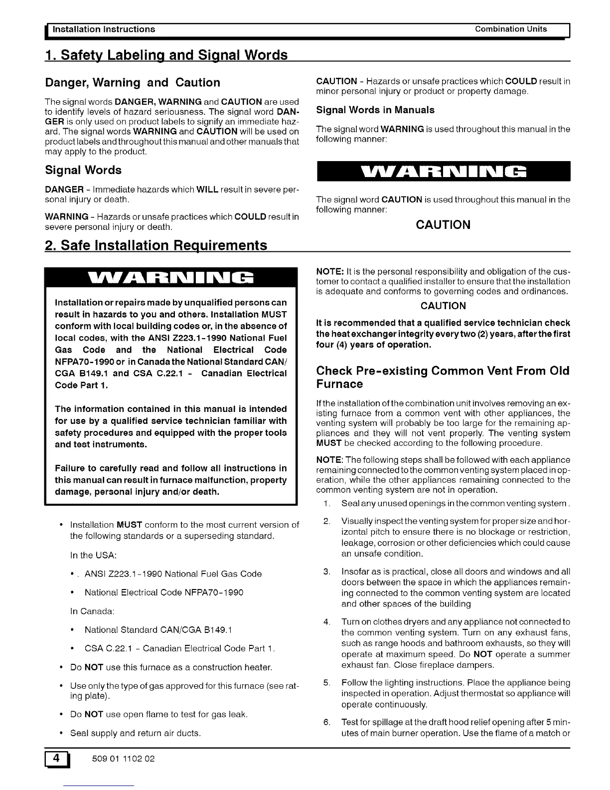 local codes, with the ANSI Z223.1-1990 National Fuel