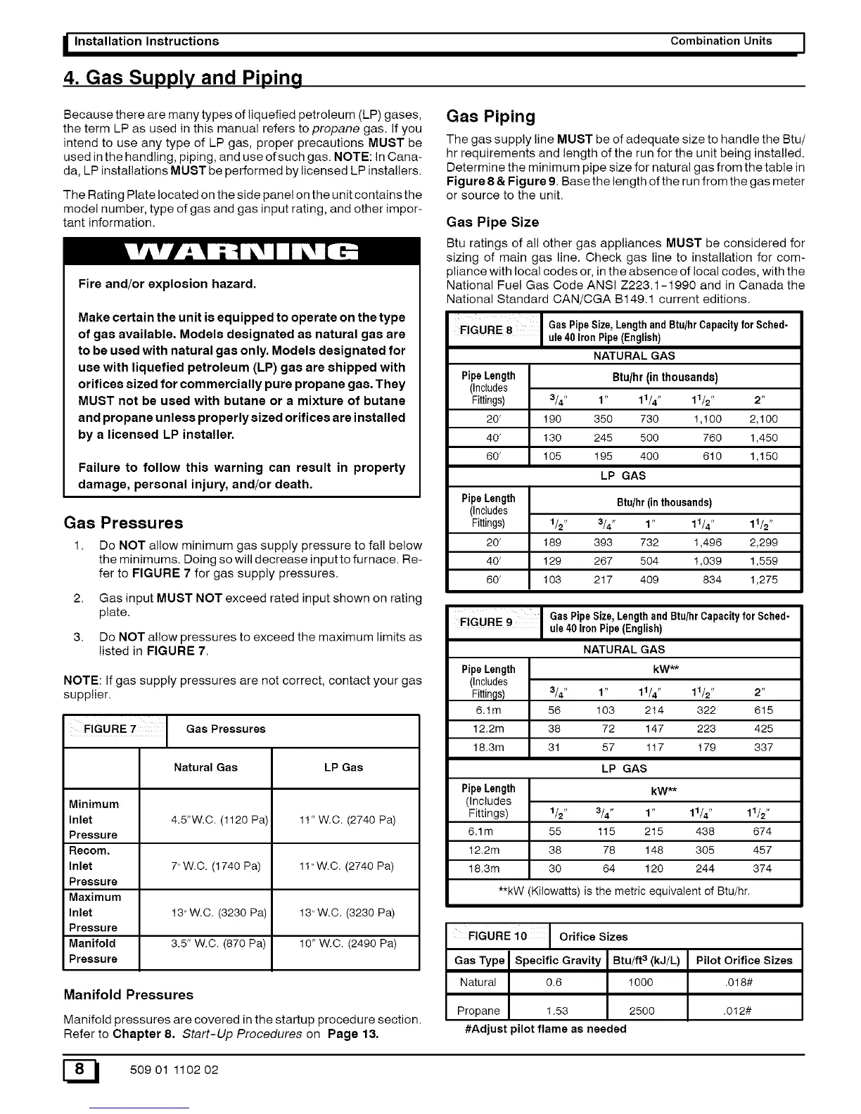 FIGURE 8 GasPipe Size, LengthandBtu/hr Capacityfor Sched-