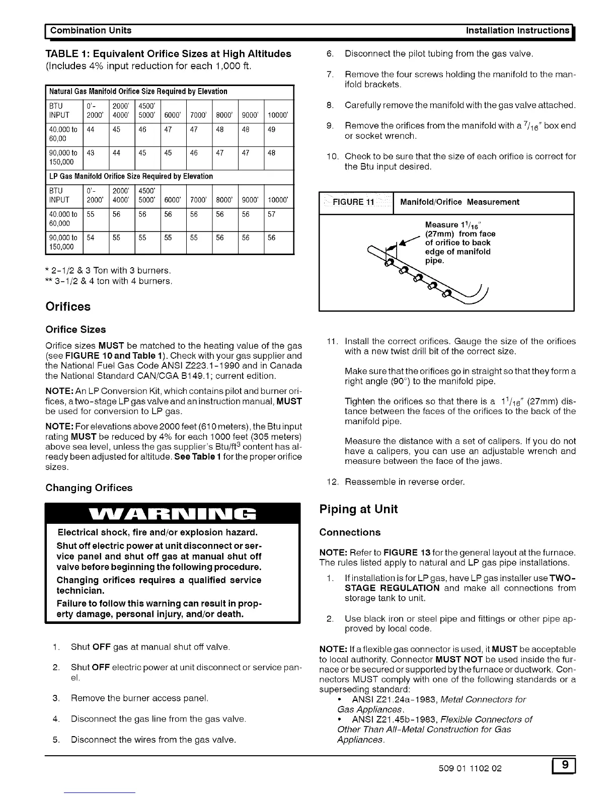(see FIGURE 10 and Table 1). Check with your gas supplier and