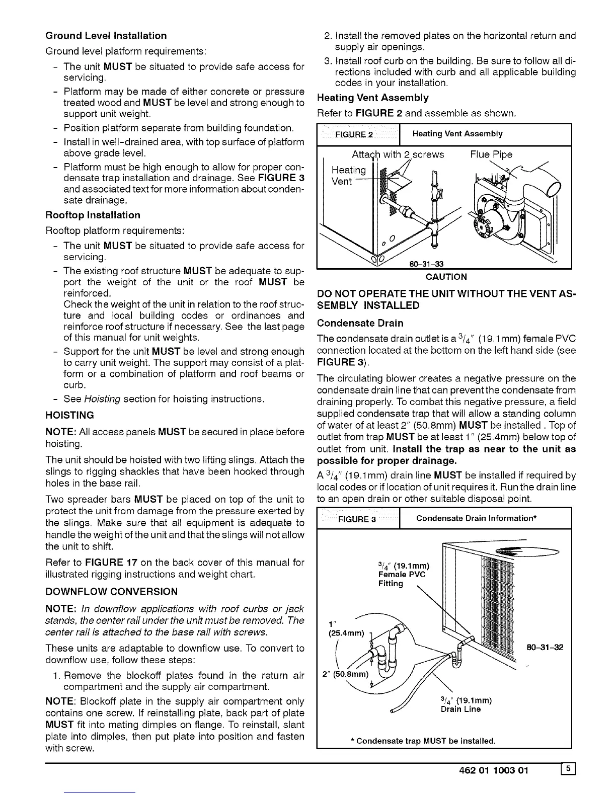 densate trap installation and drainage. See FIGURE 3