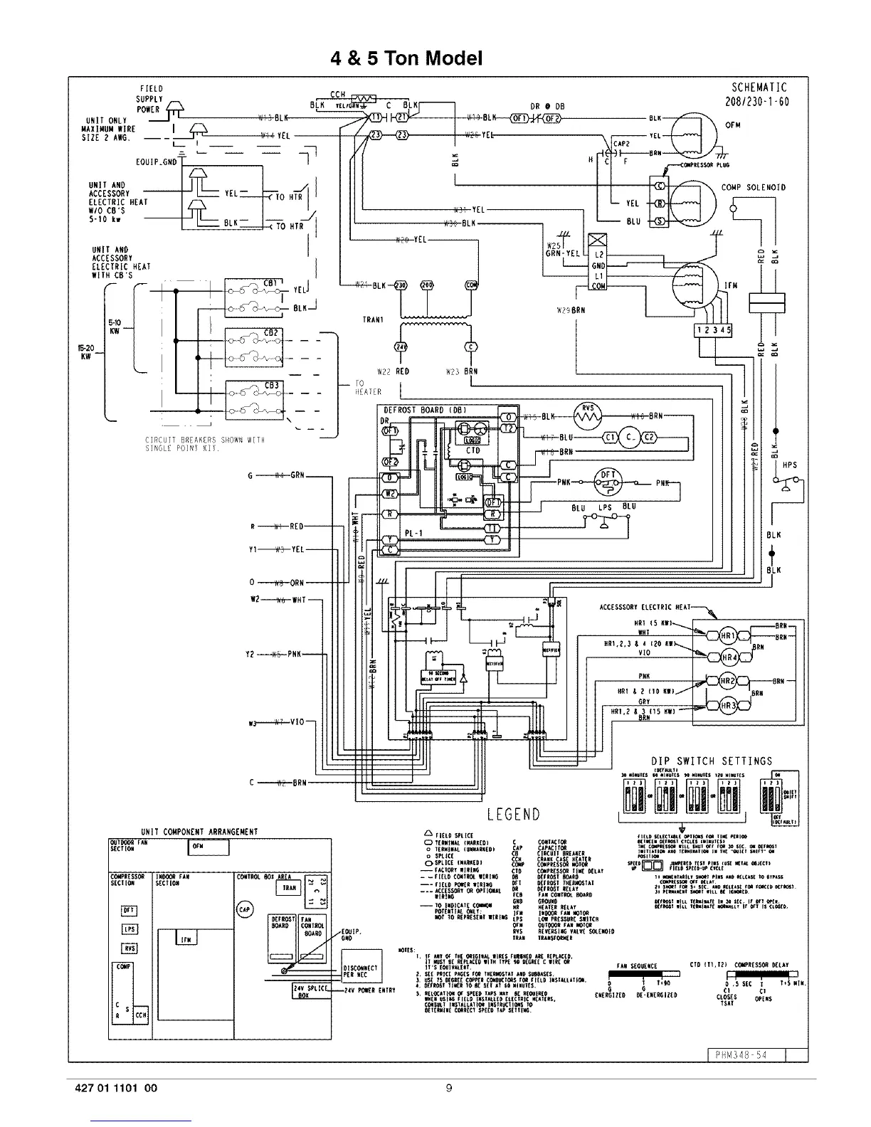 ICP PHM336K00A1 - 4 & 5 Ton Model Wiring Schematic; Component Arrangement Diagram; Wiring Legend and Installation Notes; Defrost and Speed Tap Settings