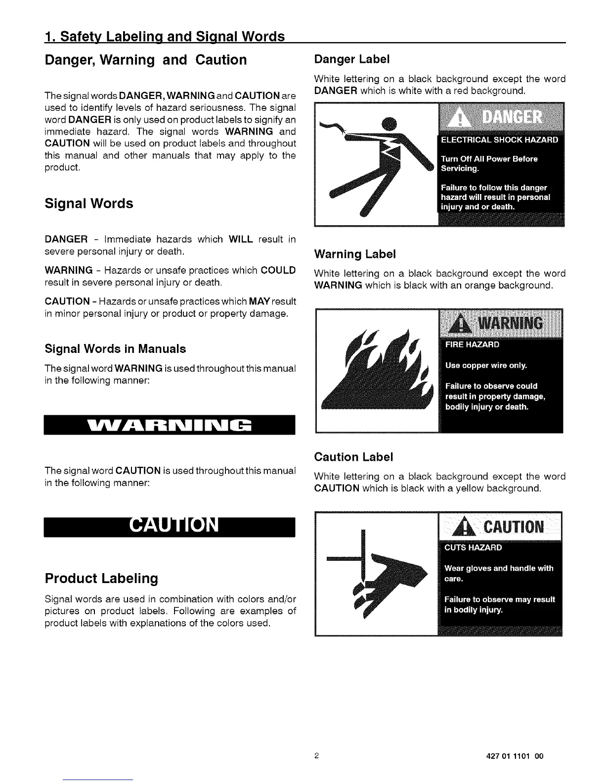 ICP PHM354K00A1 - Safety Labeling and Signal Words; Danger Label; Warning Label; Caution Label