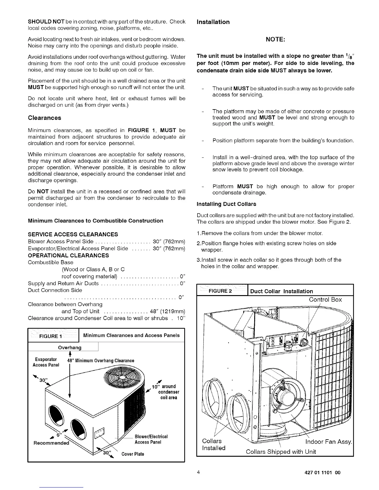 ICP PHM354K00A1 - Clearances; Installation; Installing Duct Collars
