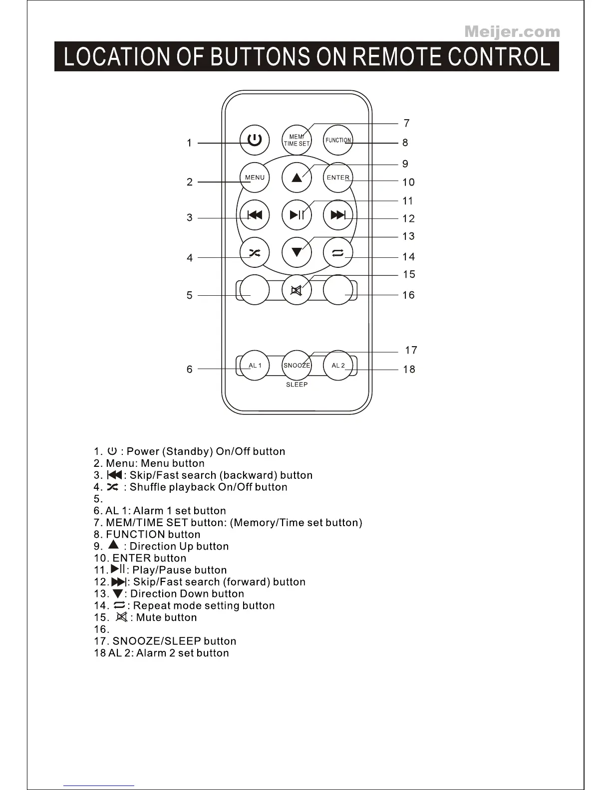iCraig CMB3215 - REMOTE CONTROL LAYOUT