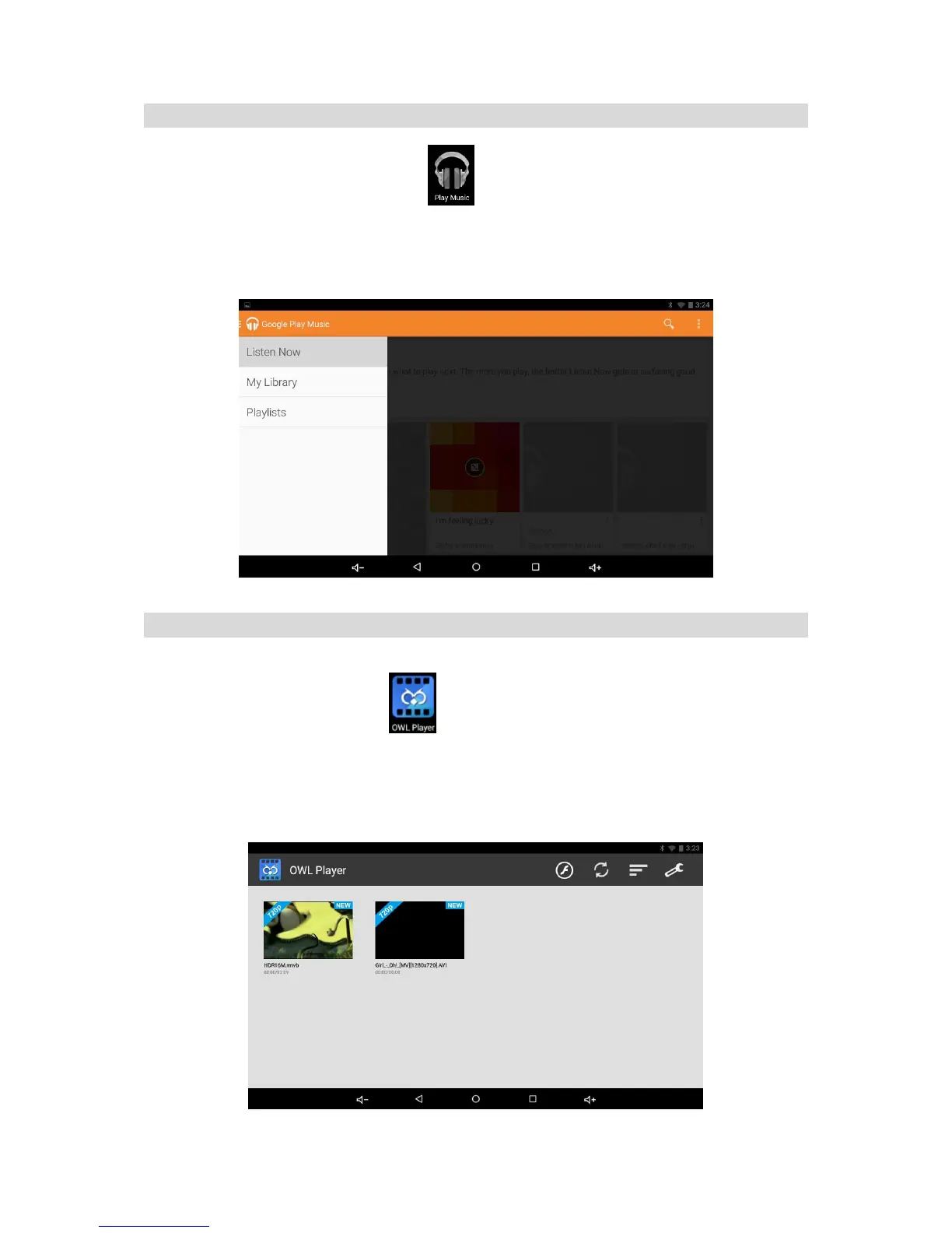 Using the pre-loaded “Play Music” Player to play audio files: