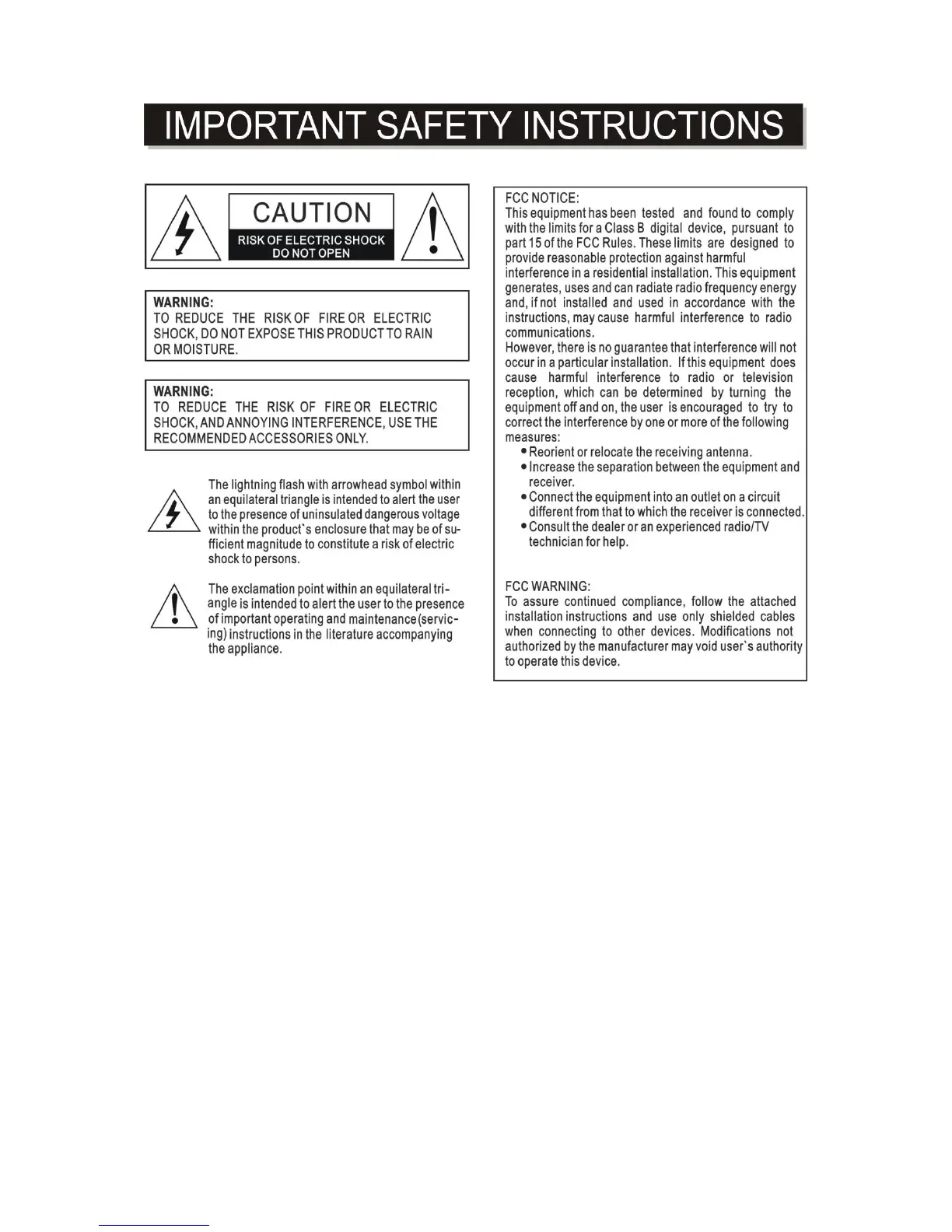 iCraig CMP793-BUN - Important Safety Instructions; Electrical Safety and FCC Compliance