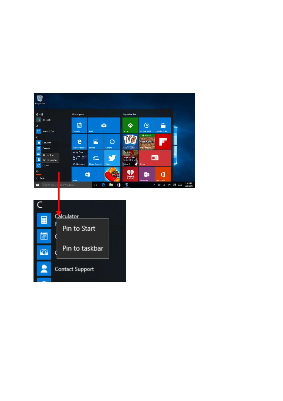 If you want to add more application programs to the start or taskbar, see the operation in the