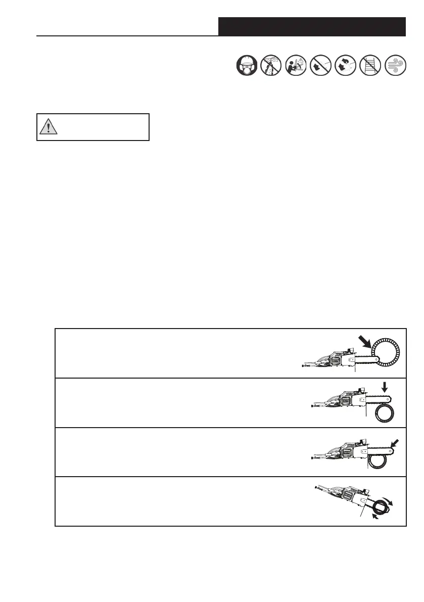 guidebar which may result in chain breakage, pushback and/or kickback.