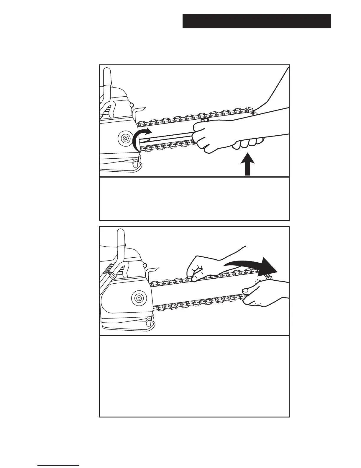 CAUTION: Be aware that the guidebar rails may